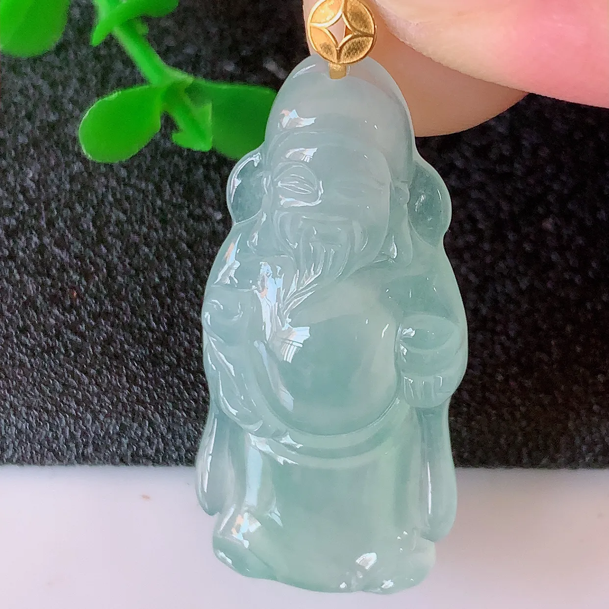 天然A货翡翠佛公吊坠,尺寸28.7-31-5.6,重量:7.81g 12月8日