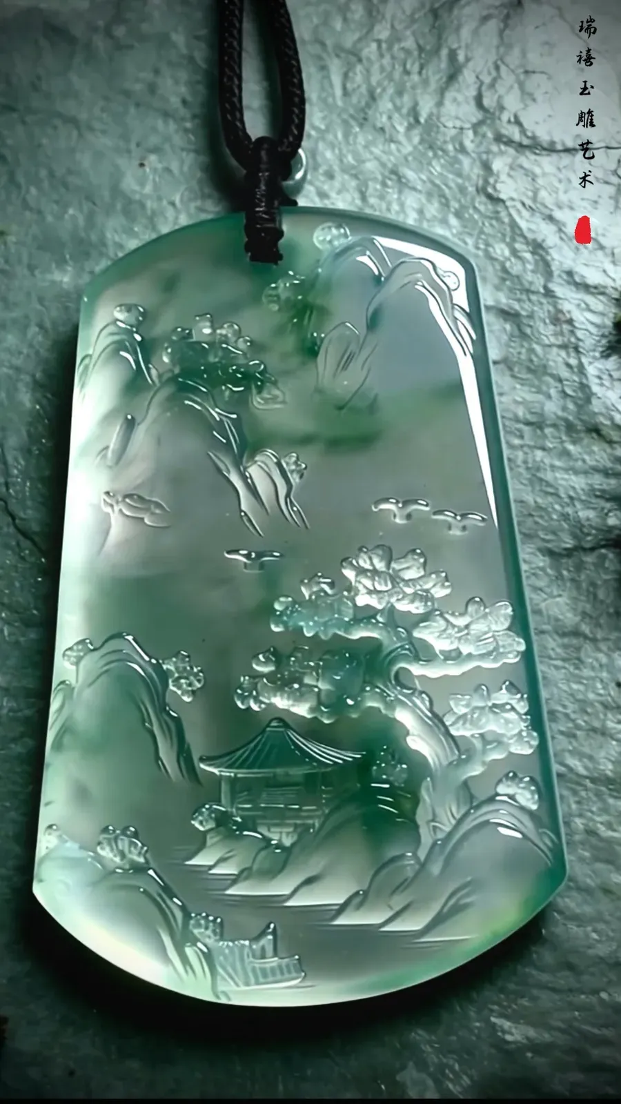【源远流长】,飘花山水牌子, 瑞禧玉雕艺术作品, 54.6-37.2-5.2mm,22.2g,