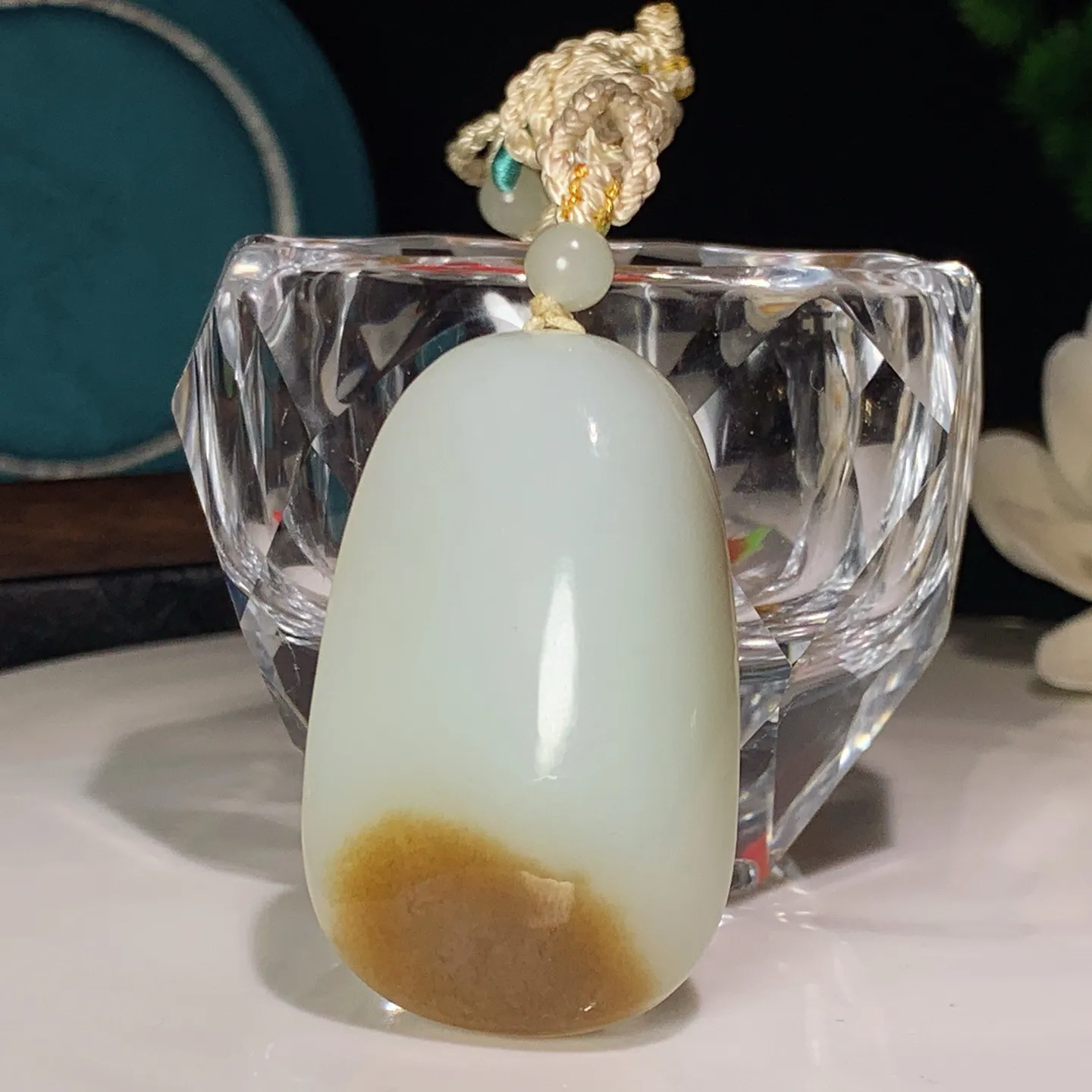 新疆且末糖平安无事牌子挂件。尺寸47/29/13重31克。玉质细腻油润。手推出油。佩戴高端典雅。lt