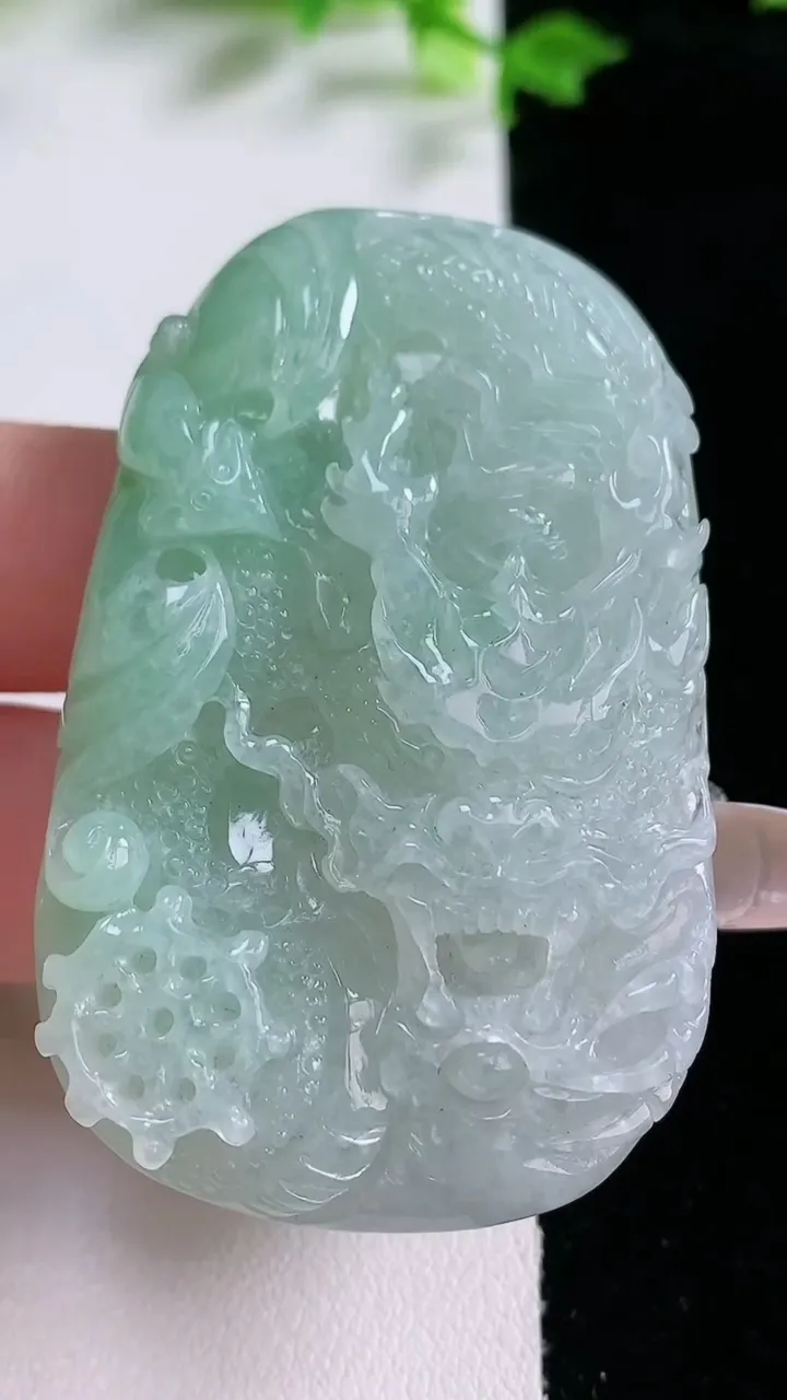 天然A货翡翠龙牌吊坠,尺寸56.7-34.4-10.4,重量:42.55g 1月20日