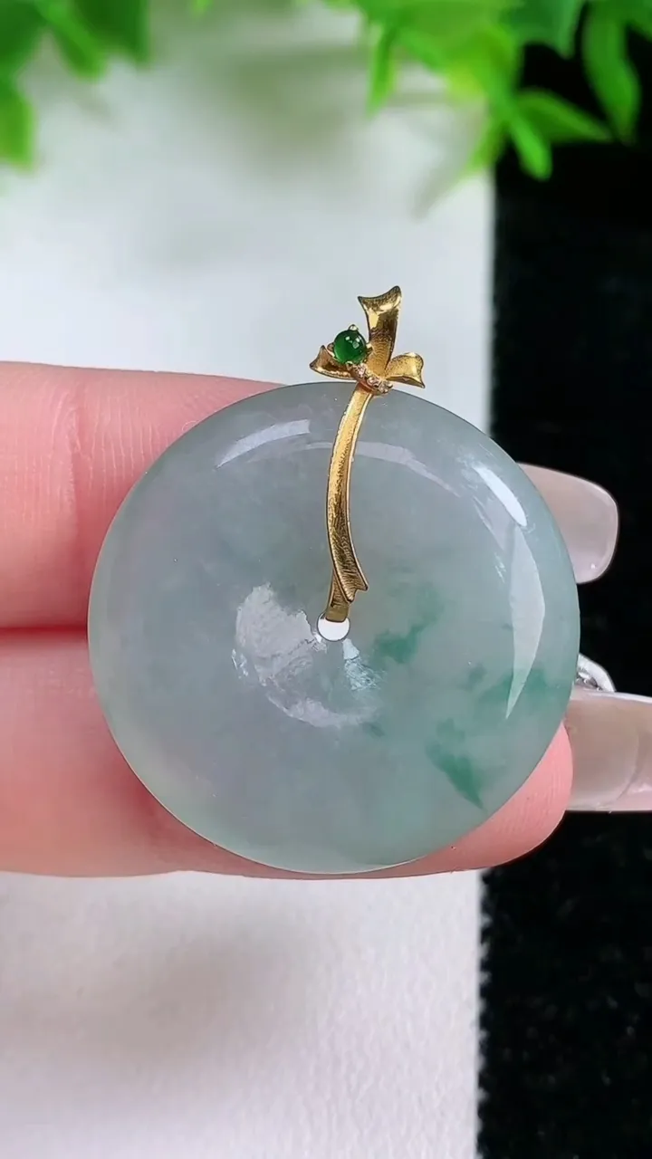 天然A货翡翠种飘花无事牌吊坠,尺寸53-40.7-5.5,重量:36.40g 1月24日