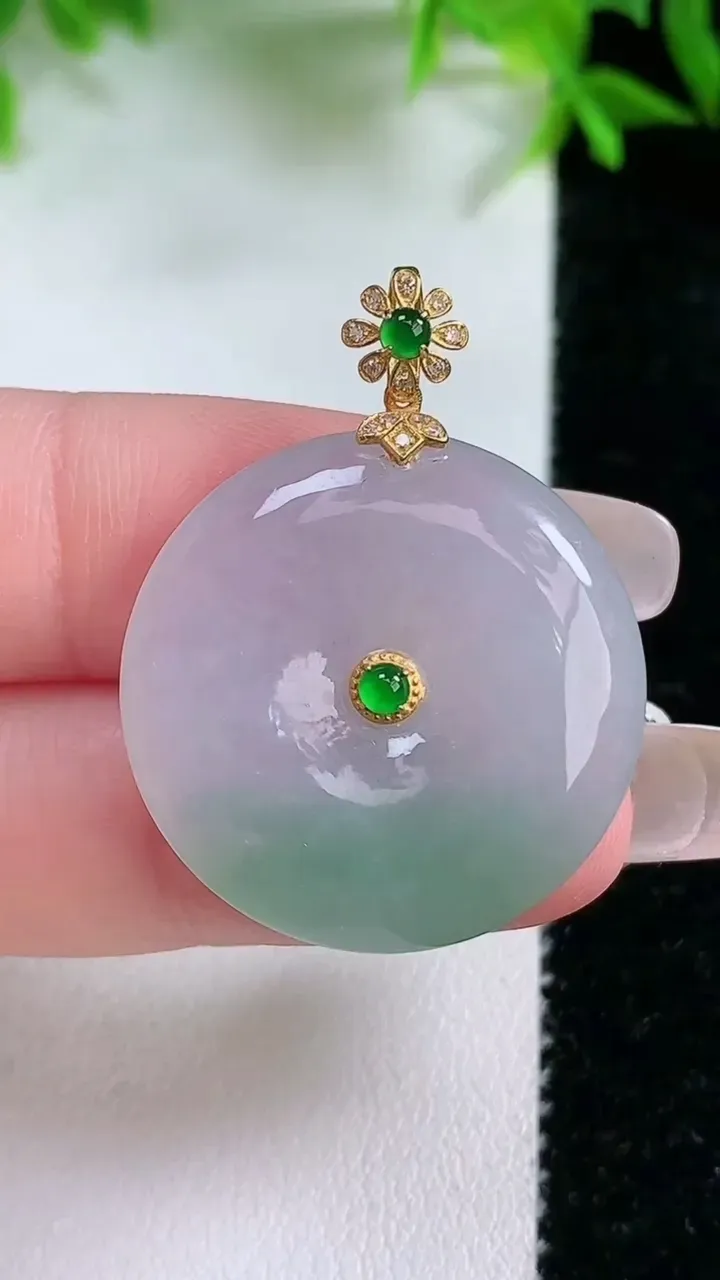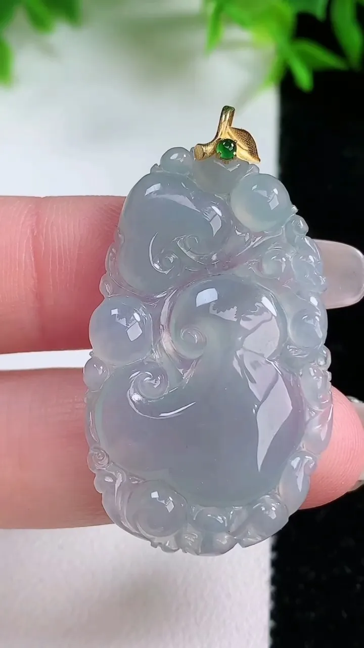 天然A货翡翠18K金紫罗兰葫芦吊坠,尺寸38-28.7-9.3,重量:17.96g 1月24日