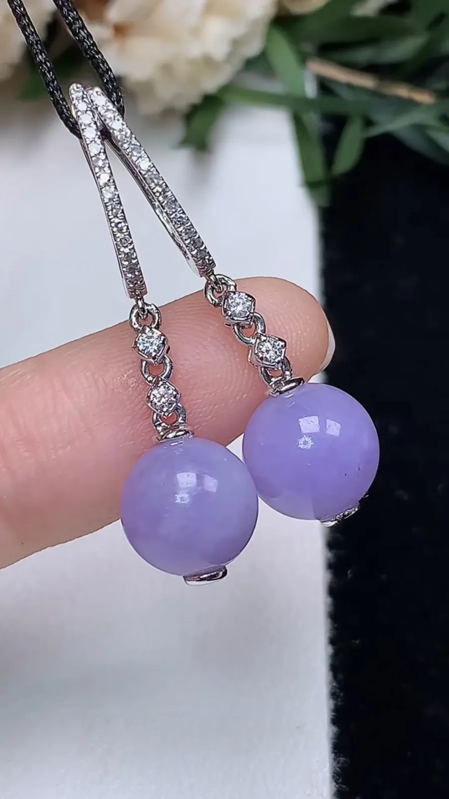 翡翠a货18k金紫罗兰圆珠耳坠,尺寸8.4,重量:3.88g