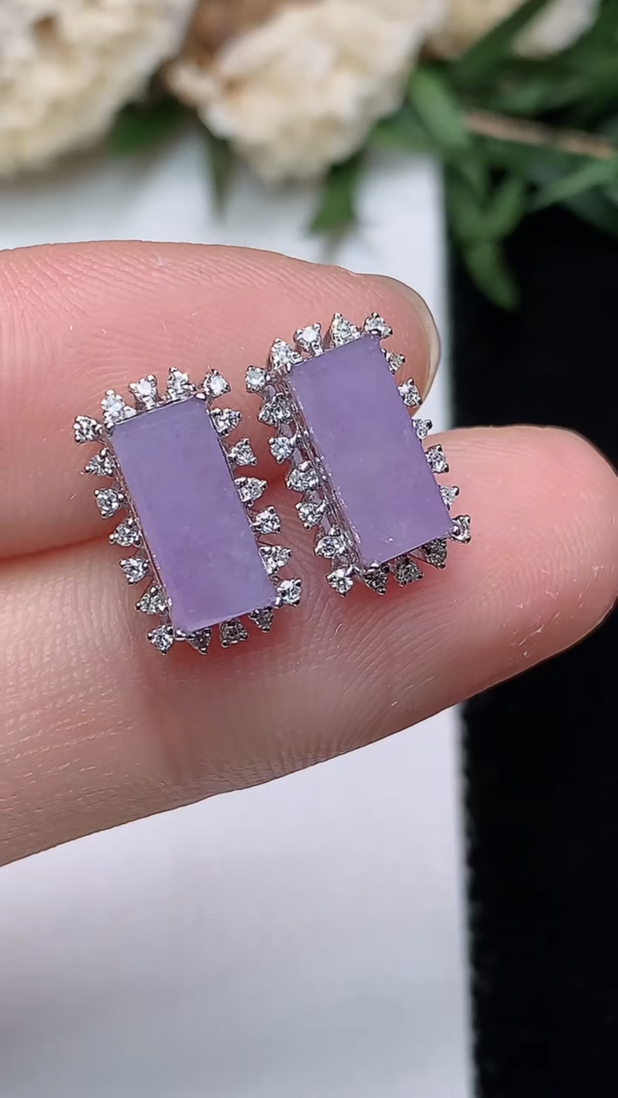 翡翠a货18k金冰种紫罗兰无事牌耳钉,尺寸9-4,重量:1.83g