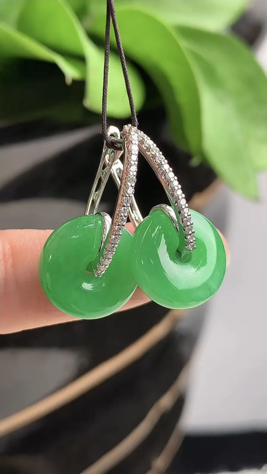 高品质白蛋面耳拍,裸石10-9.3-5.5mm, 18K金,南非钻,翡翠绿蛋面,55.3g,