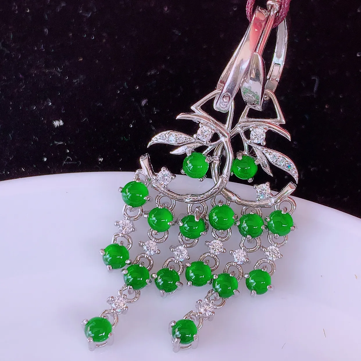 冰透满绿翡翠925银镶嵌耳坠,自然光实拍,翠色灵动,颜色漂亮,种老水足,品相佳,佩戴佳品!#98.1