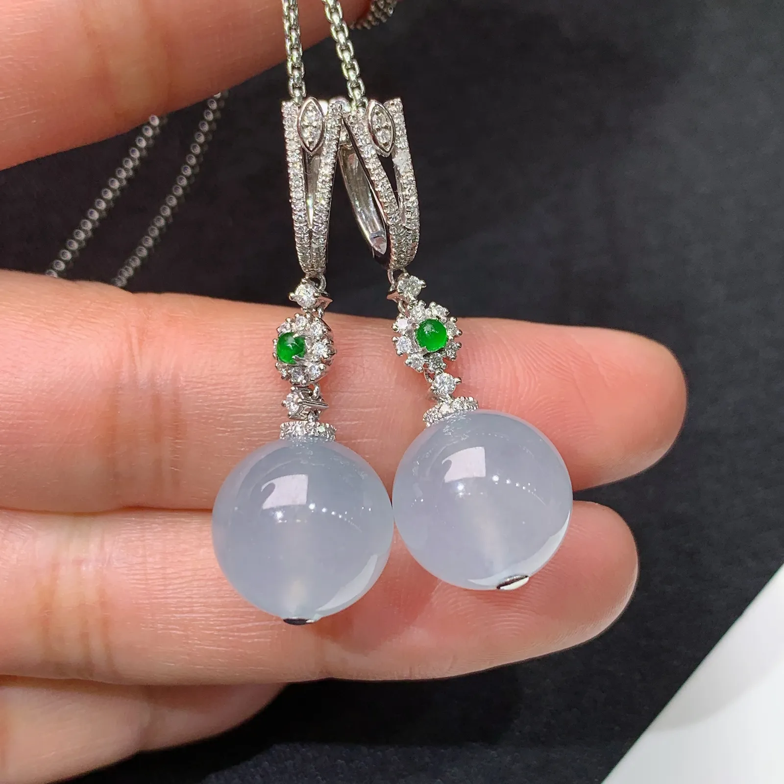 冰种圆珠耳坠,18k金镶嵌,温润细腻,简约时尚,冰润细腻,种水足,Of 直径12.6
