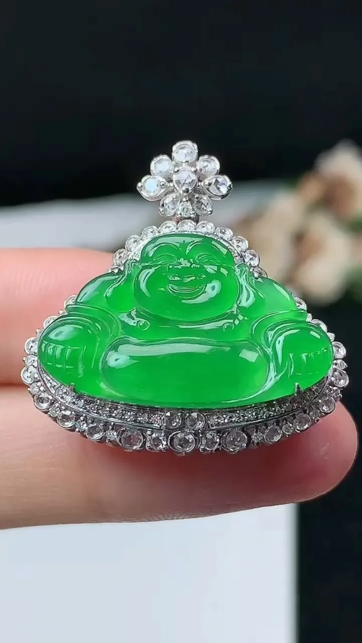 天然A货翡翠佛公吊坠,尺寸29.2-28.6-11.9,裸石15.4-24.8,重量:7.24g 1