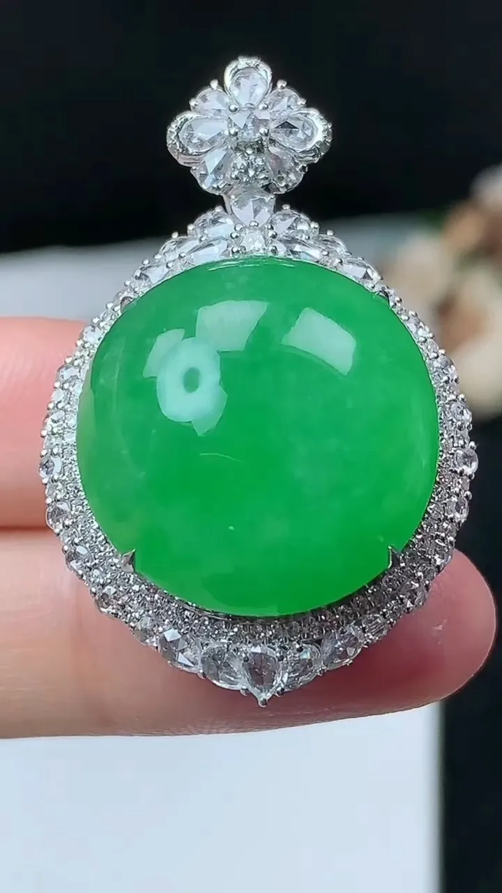 天然A货翡翠蛋面吊坠,尺寸39-25.5-17.7,裸石21-20.5,重量:15.39g 11月2