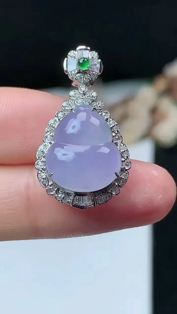 天然A货翡翠紫罗兰葫芦吊坠,尺寸27.3-15.6-8.8,裸石13.9-11.8,重量:3.12g