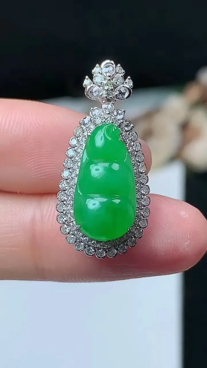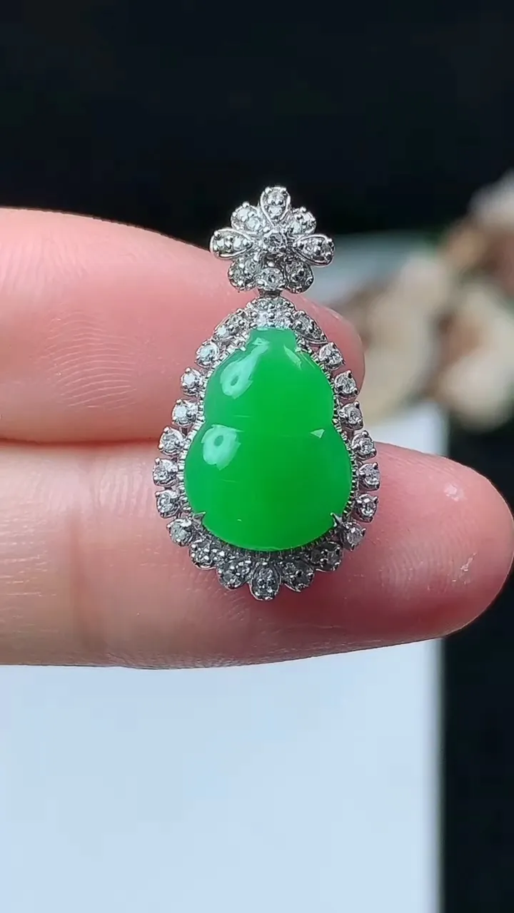 天然A货翡翠葫芦吊坠,尺寸22.7-12.3-7.2,裸石11.9-8.9,重量:2.71g 11月