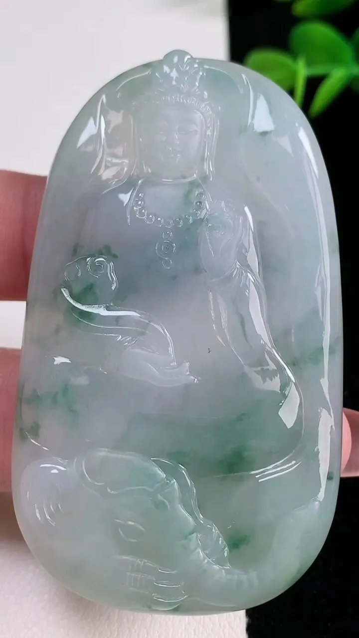 天然A货翡翠冰种飘花普贤菩萨吊坠,尺寸67.7-39.7-5.8,重量:37.10g 12月17日