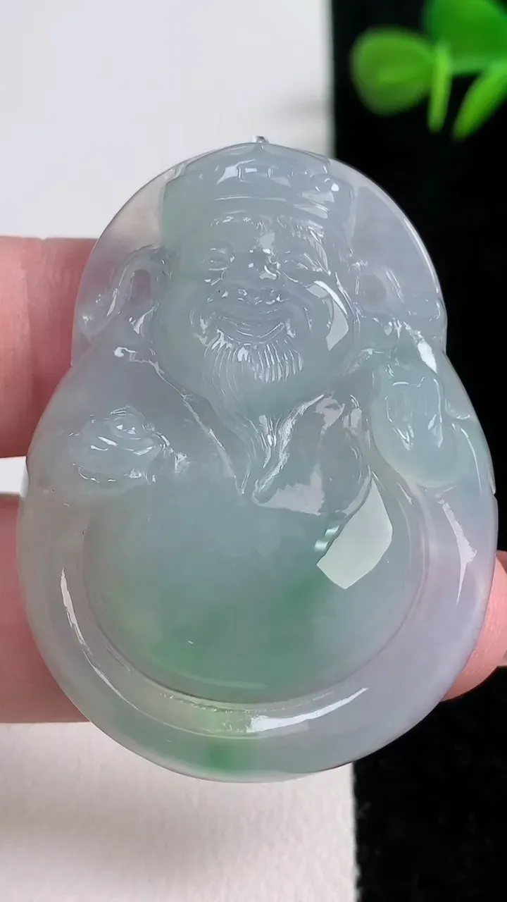 天然A货翡翠财神爷吊坠,尺寸47-35.3-6.7,重量:18.28g 12月17日