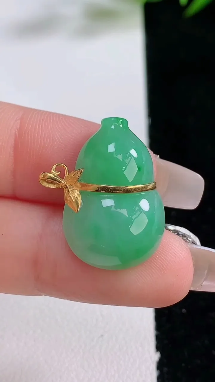 天然A货翡翠葫芦吊坠,尺寸23.3-15-6,重量:3.85g 12月24日