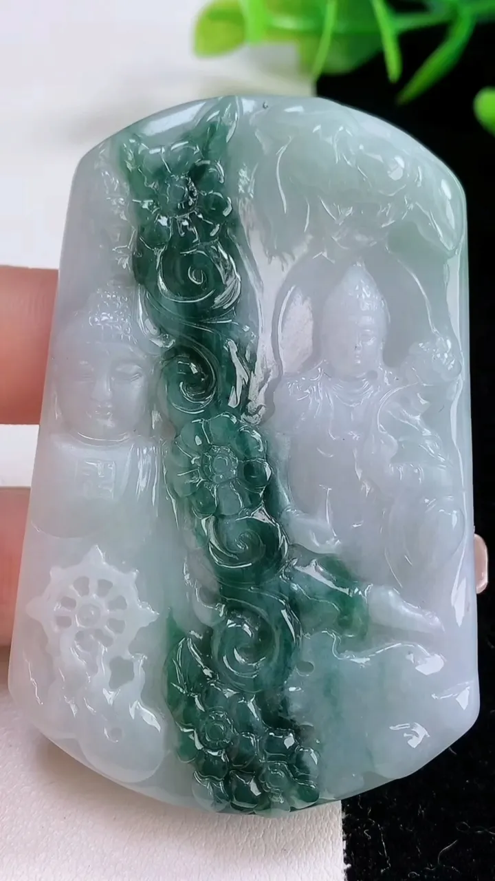 天然A货翡翠飘花大势至菩萨吊坠,尺寸68.6-44.7-6,重量:42.85g 12月24日