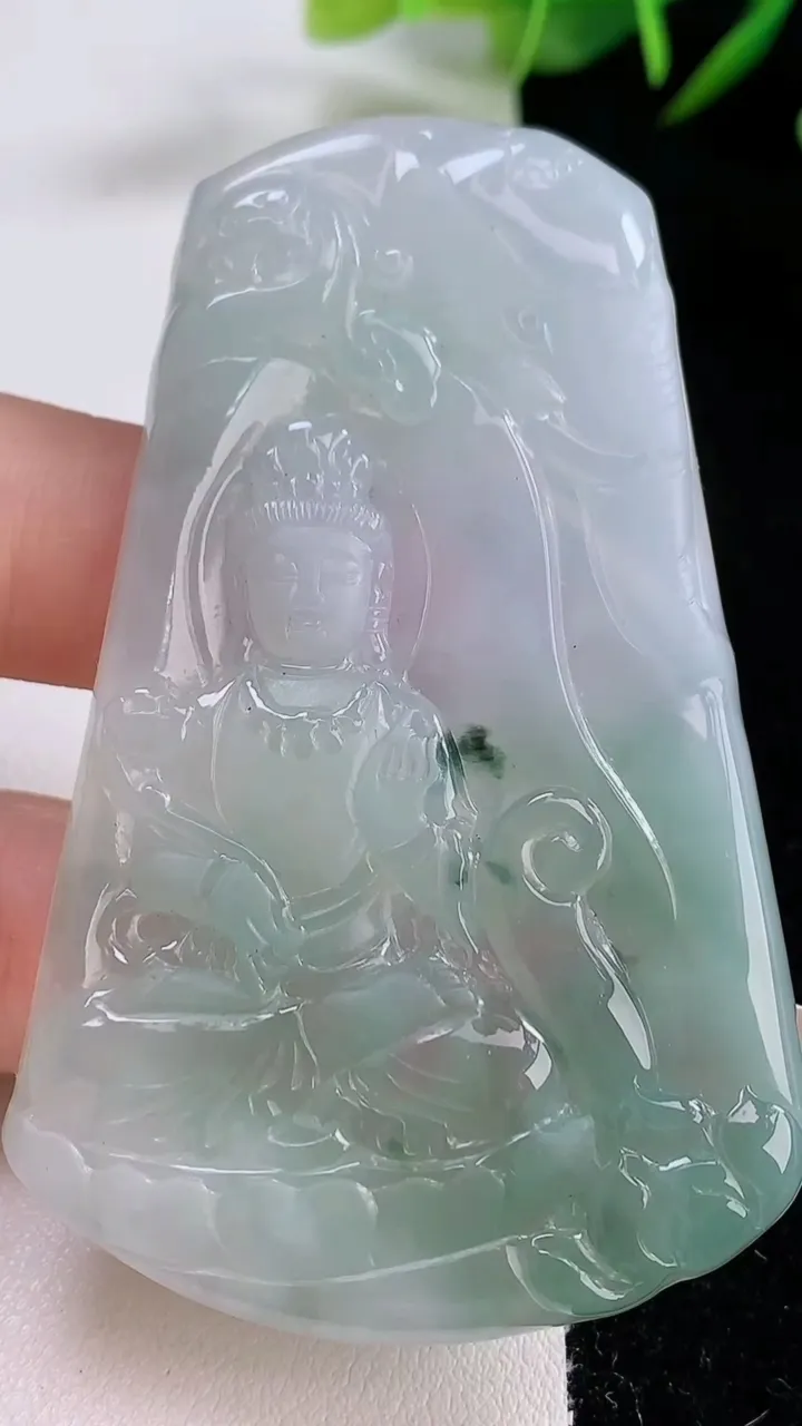 天然A货翡翠观音菩萨吊坠,尺寸66.7-42-4.3,重量:27.02g 12月24日