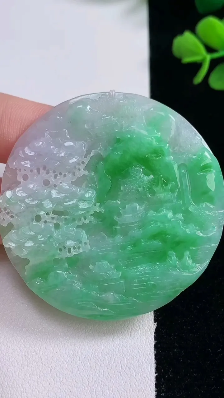 天然A货翡翠山水牌吊坠,尺寸52-5,重量:24.32g 12月30日