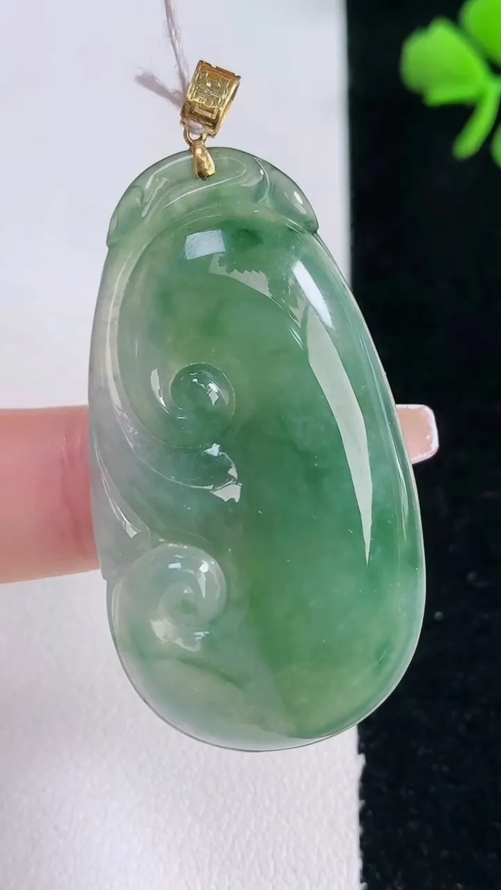 天然A货翡翠如意吊坠,尺寸44.4-24.8-6.2,重量:12.57g 12月30日