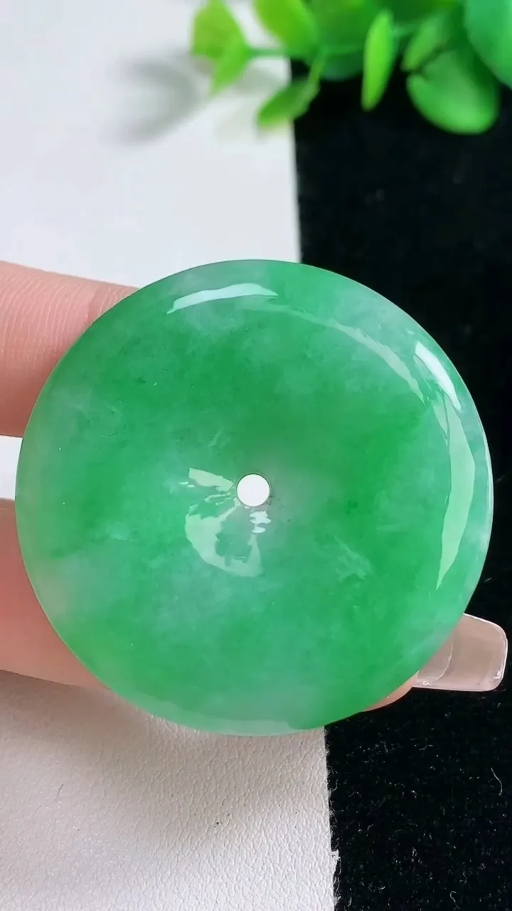 天然A货翡翠平安扣吊坠,尺寸42-5.9,重量:21.80g 12月31日