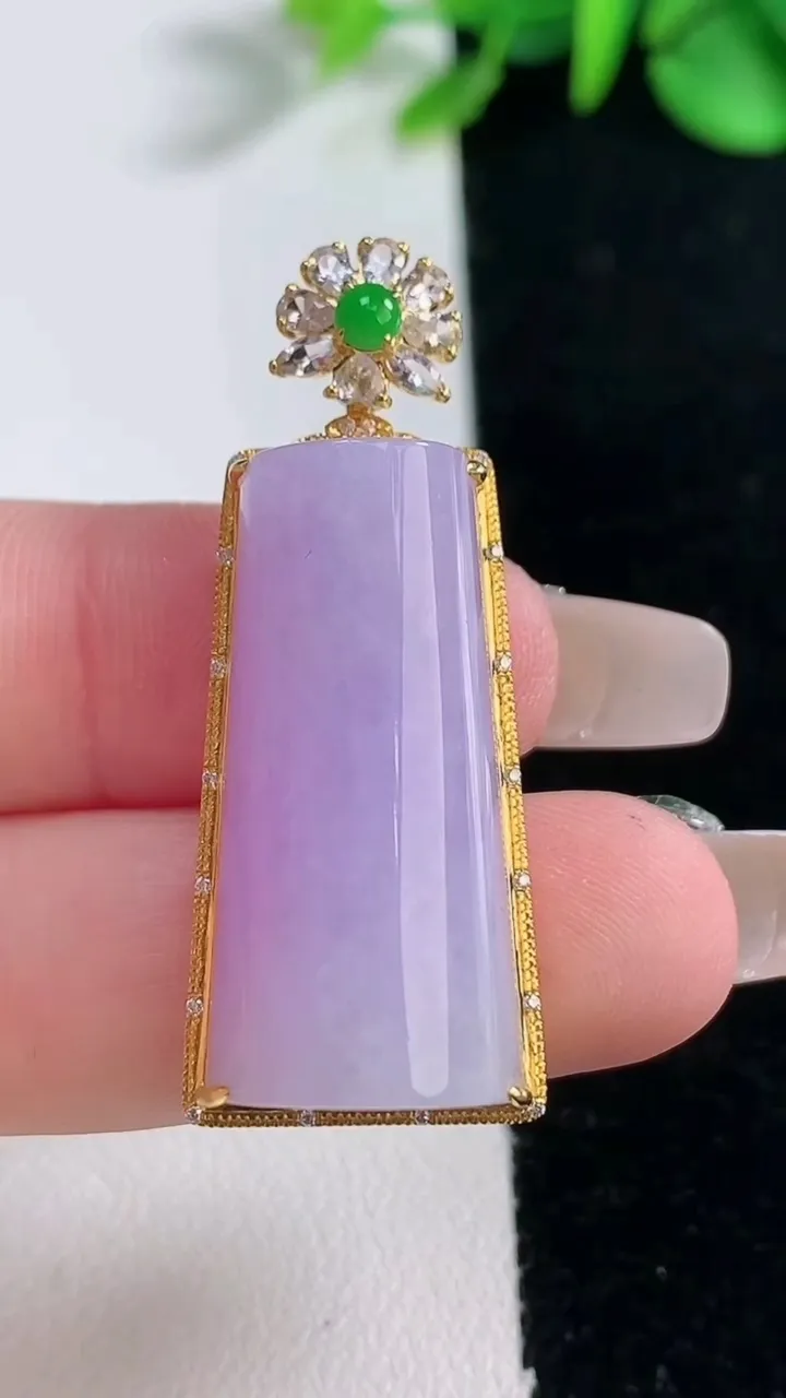 天然A货翡翠18K金紫罗兰无事牌吊坠,尺寸40.8-16-8.8,裸石29.2-14.8重量:7.8