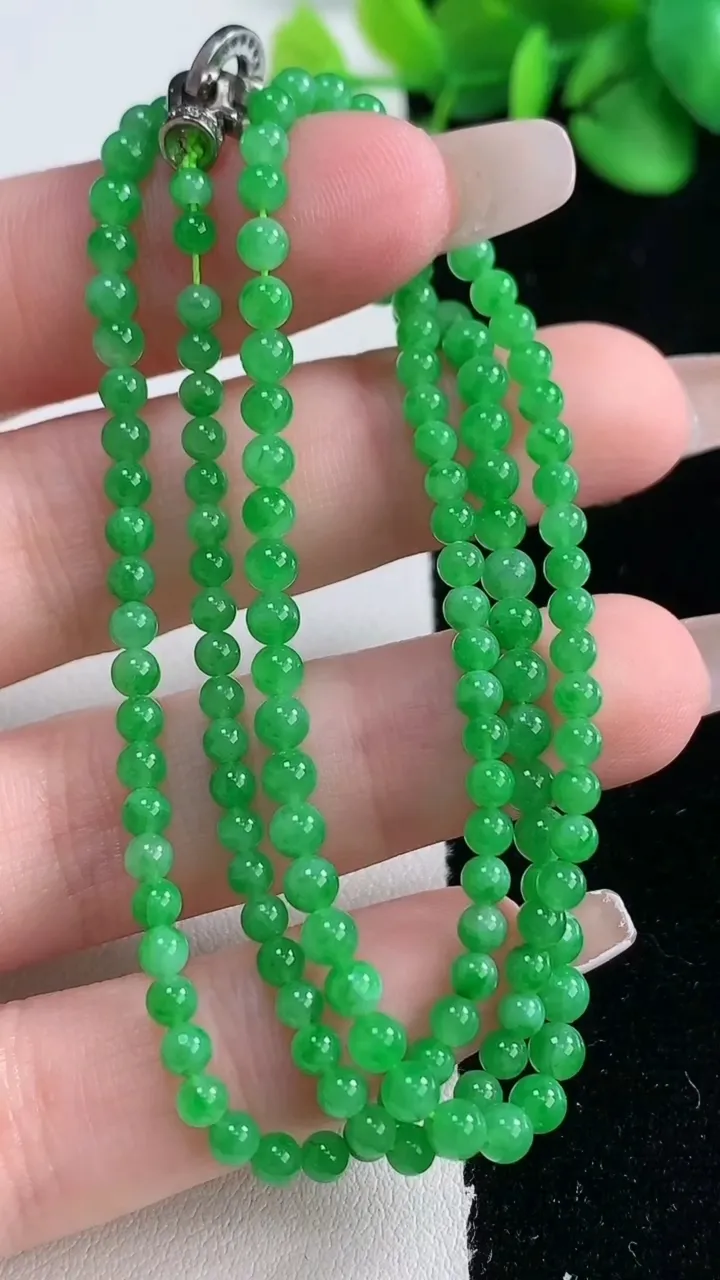 天然A货翡翠小米珠项链,尺寸3-149颗,重量:9.83g 12月31日