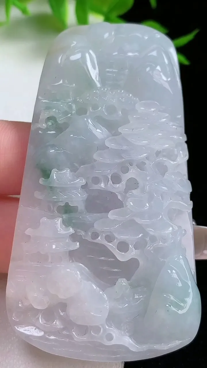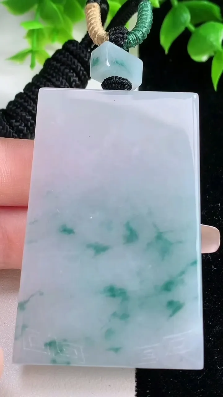 天然A货翡翠冰种飘花无事牌吊坠,尺寸62-39.3-5.8,重量:55.98g 1月18日