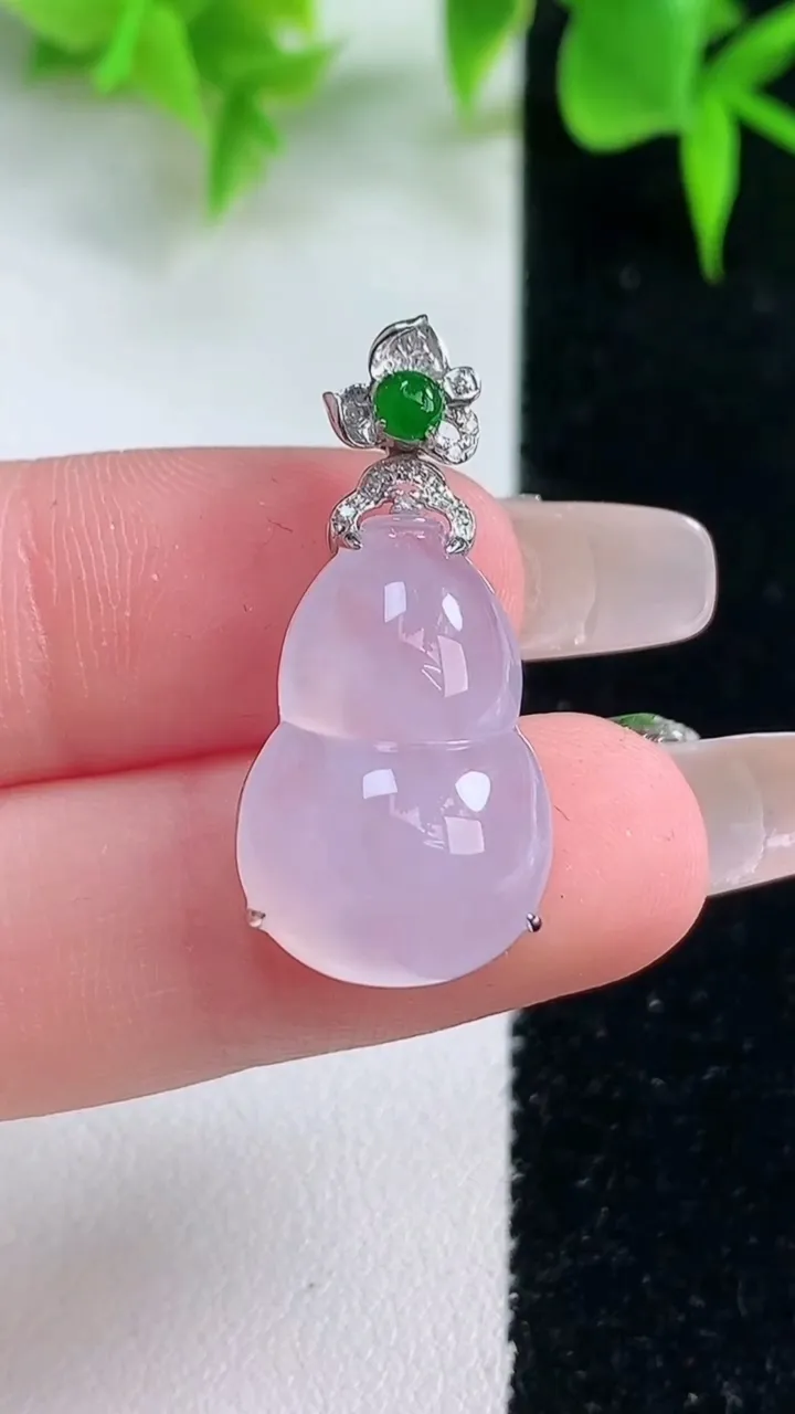 天然A货翡翠种紫罗兰葫芦吊坠,尺寸30-20.6-13.8-8,重量:3.83g 1月18日
