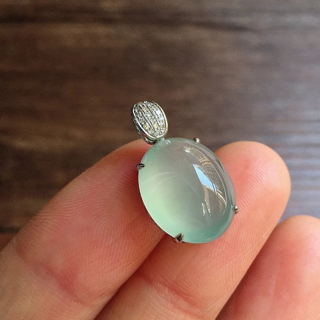 冰种底色蛋面吊坠,18k金镶嵌,冰润饱满,玉质细腻,种水足,Gs 尺寸20.8*12.1*7.3