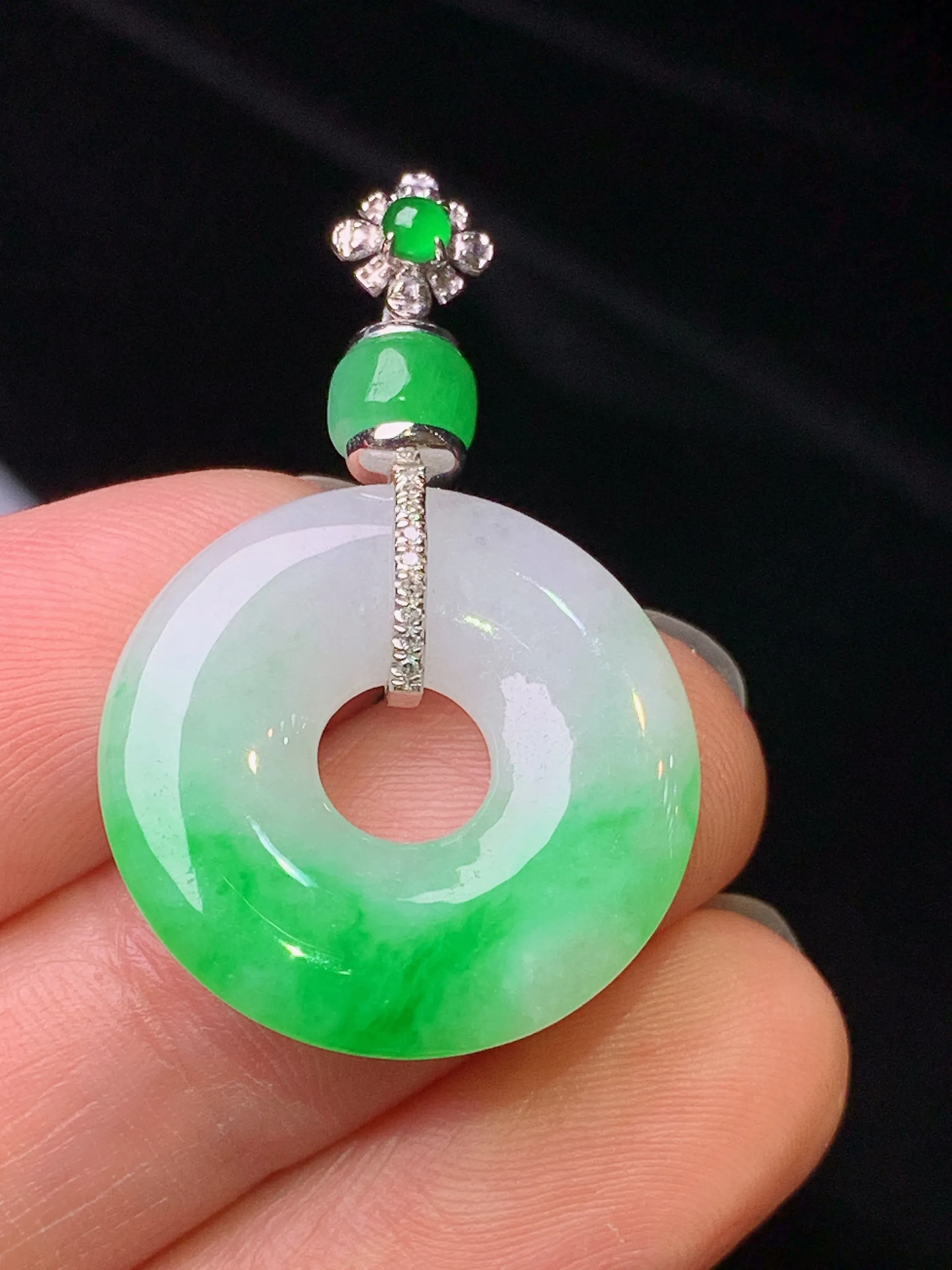 阳绿福豆吊坠,18k金镶嵌,色泽鲜阳,冰润细腻,种水足,Ax 尺寸38.2*14.8*11.6