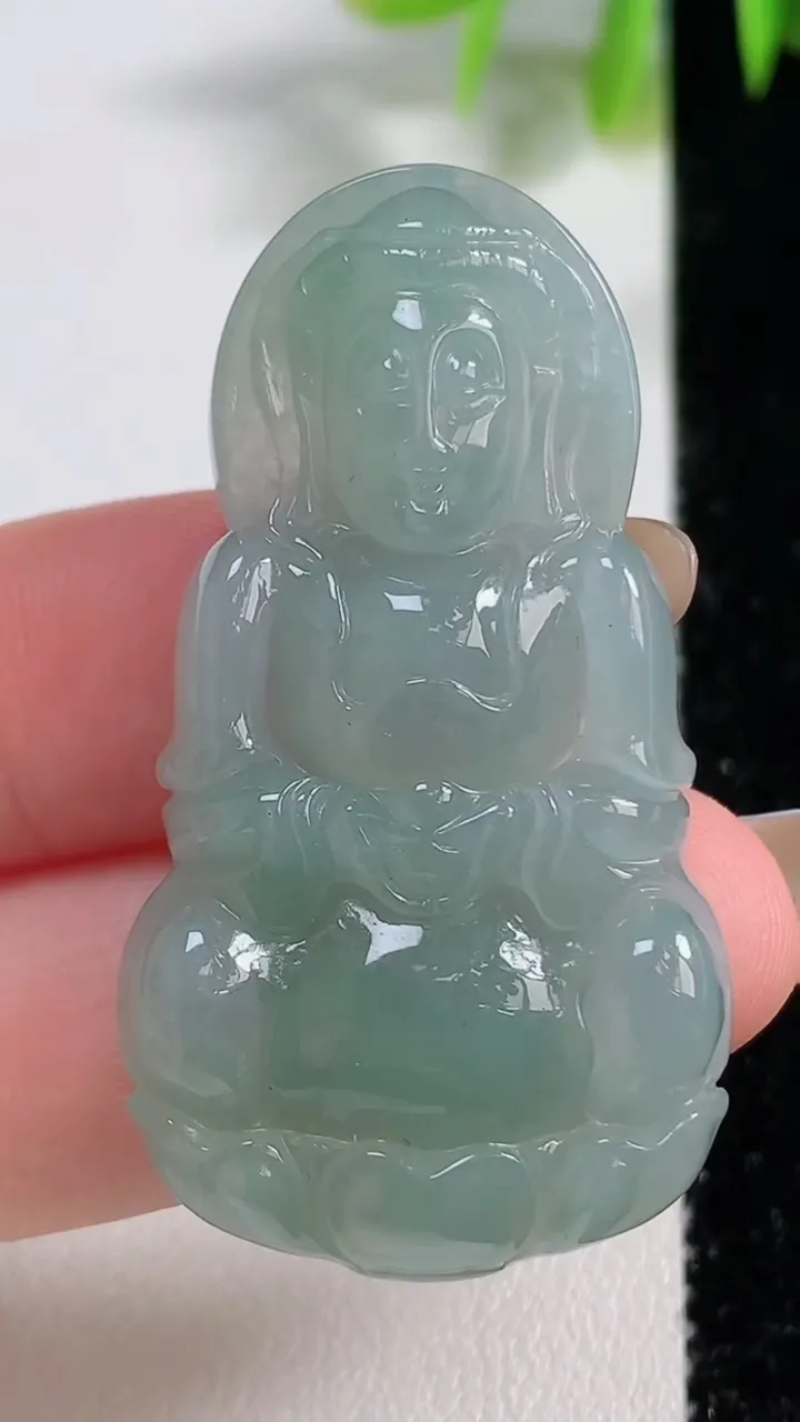 天然A货翡翠正装观音菩萨吊坠,尺寸45.7-25.5-6,重量:12.15g 11月9日