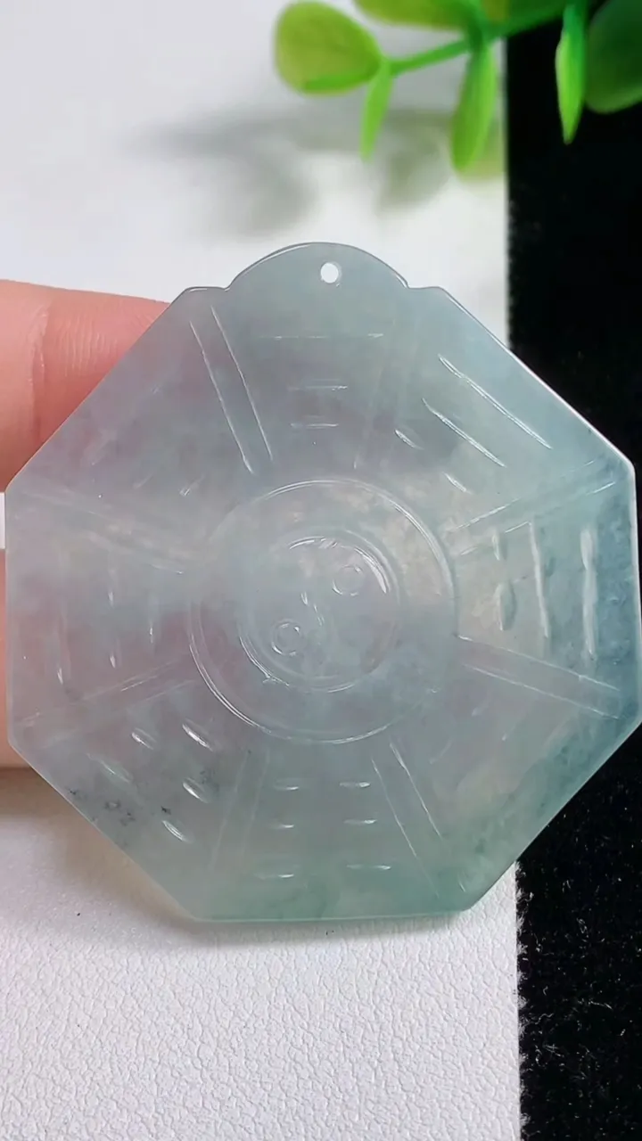天然A货翡翠冰种飘花八卦阵吊坠,尺寸48.3-45.4-3,重量:14.11g 11月9日