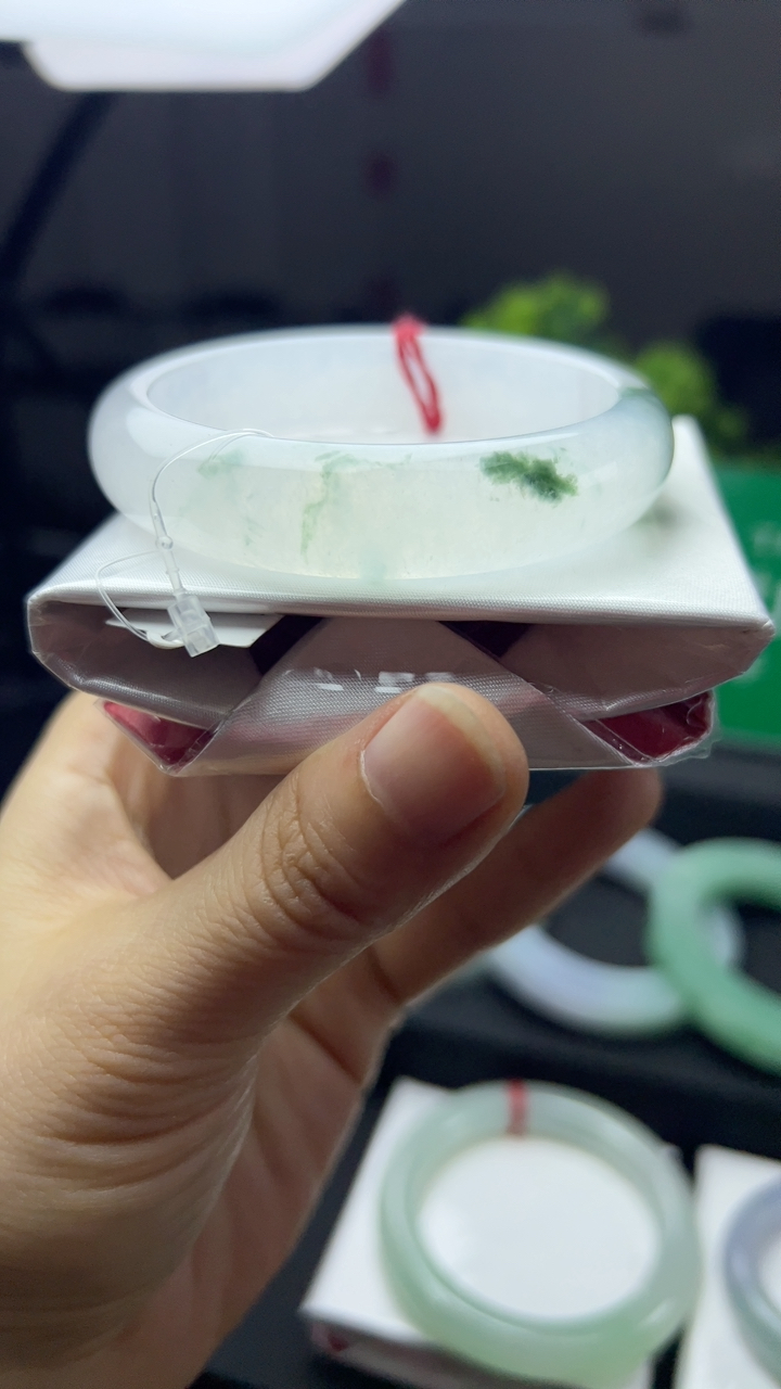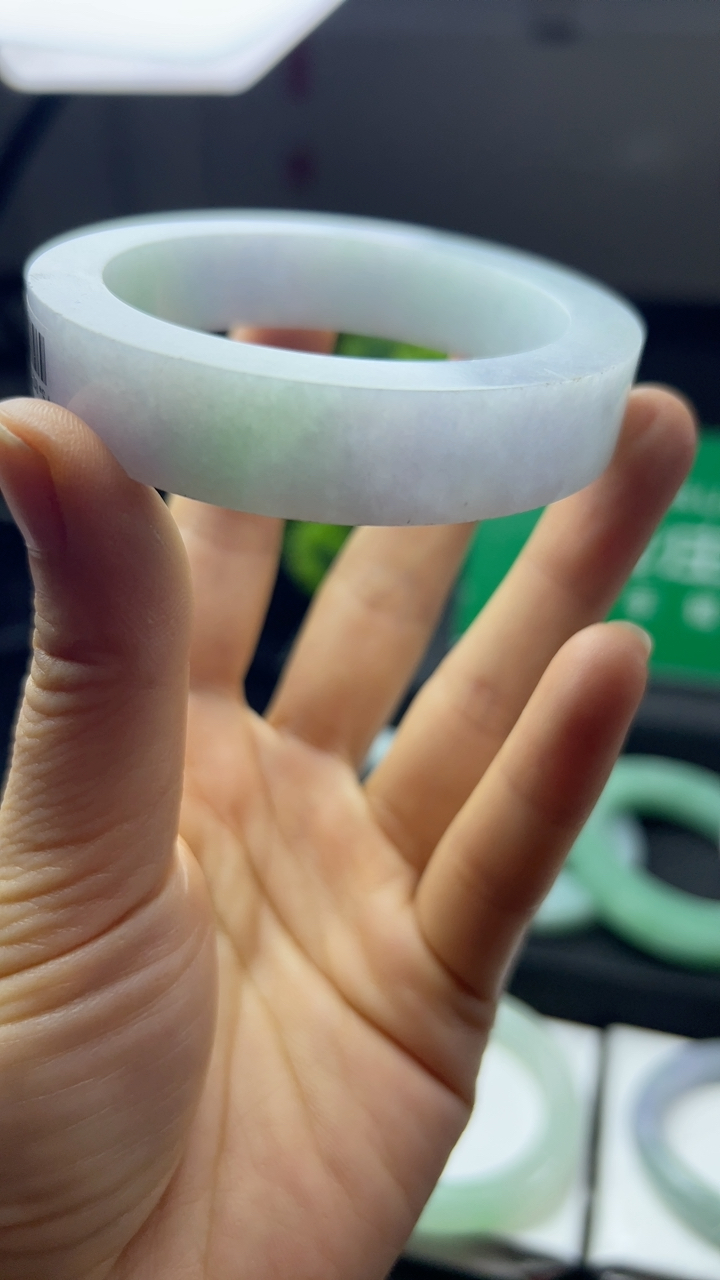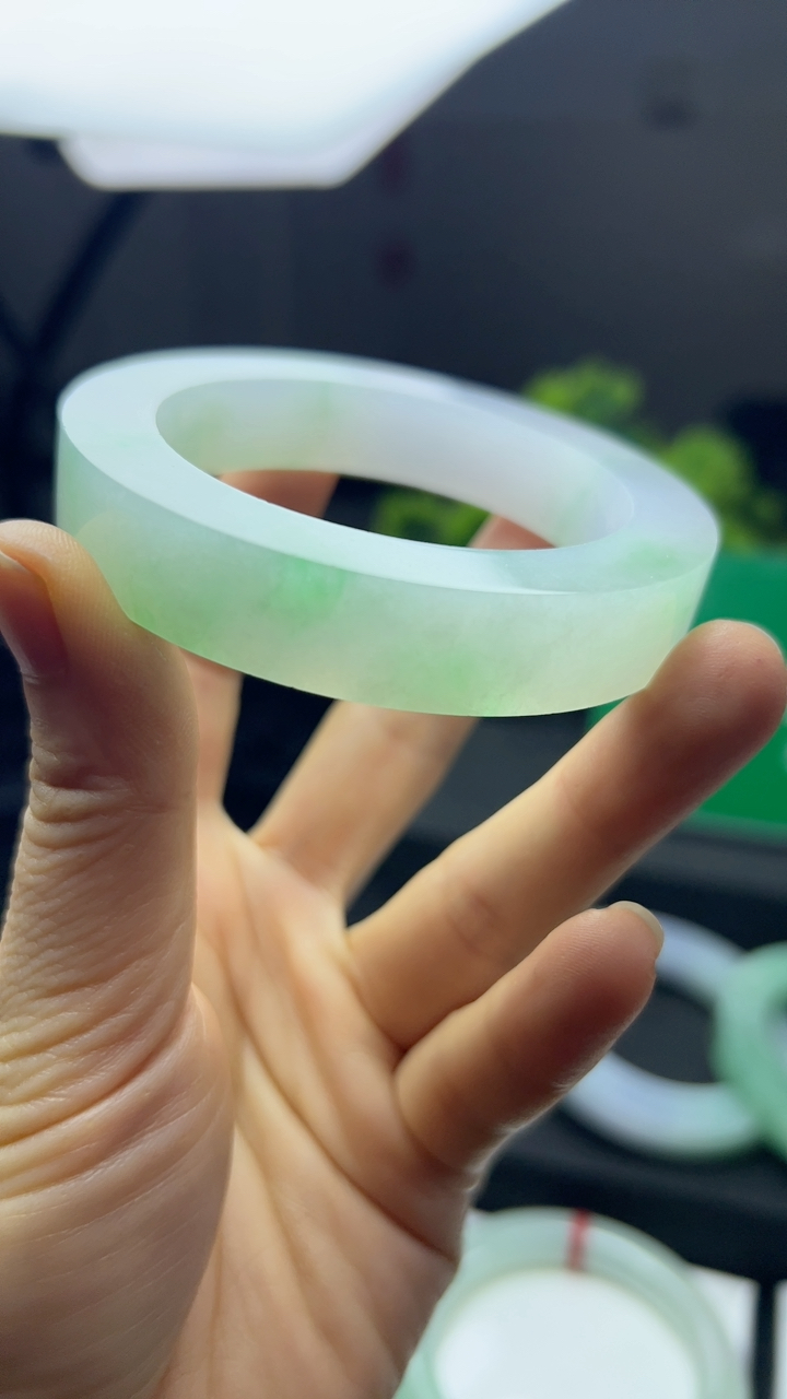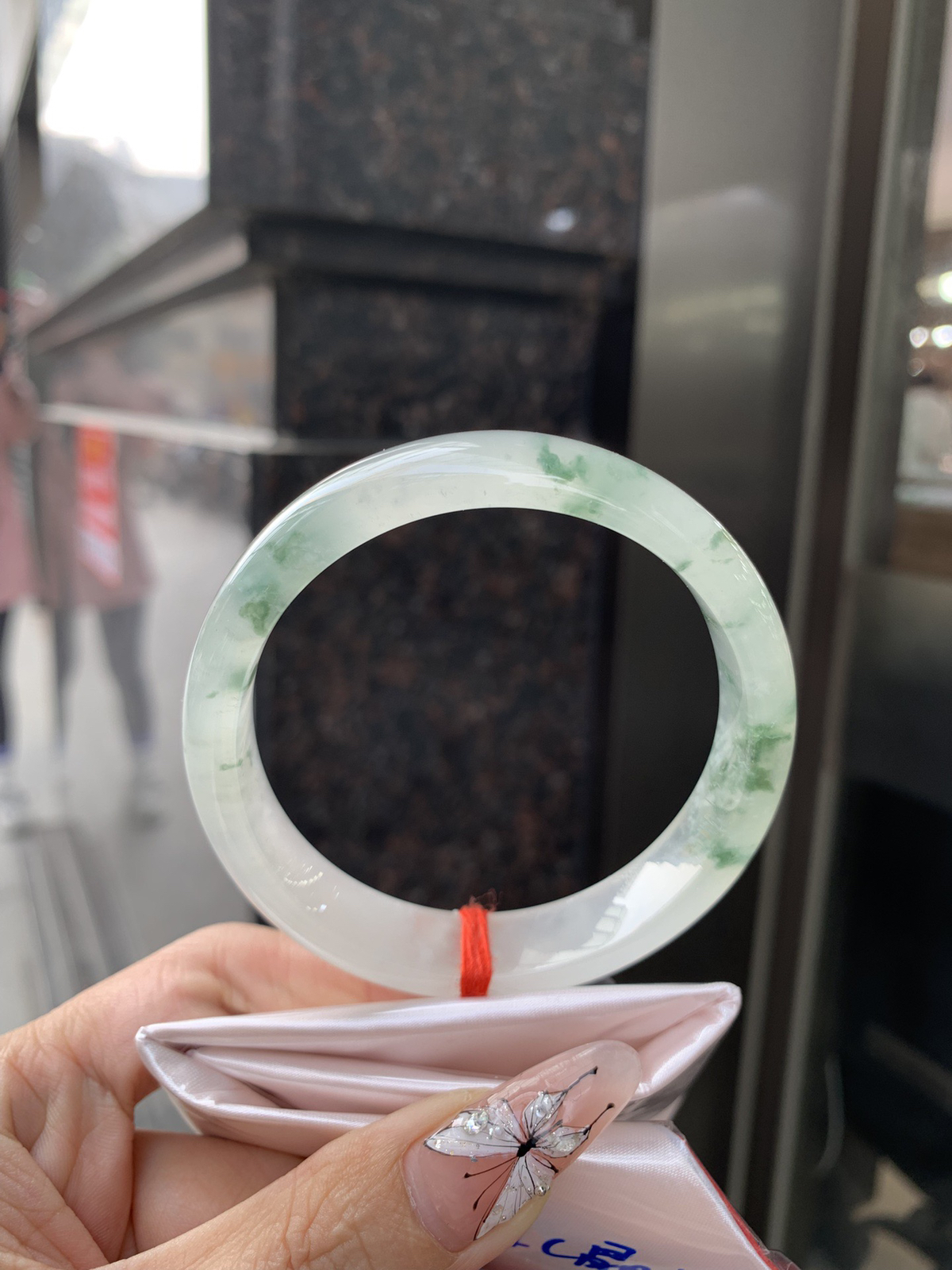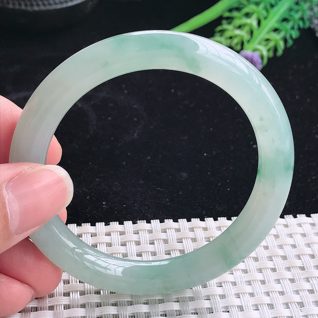 实拍A货翡翠53.5/8.9/9老坑冰胶果冻冰飘花圆条玉镯平安镯美人镯