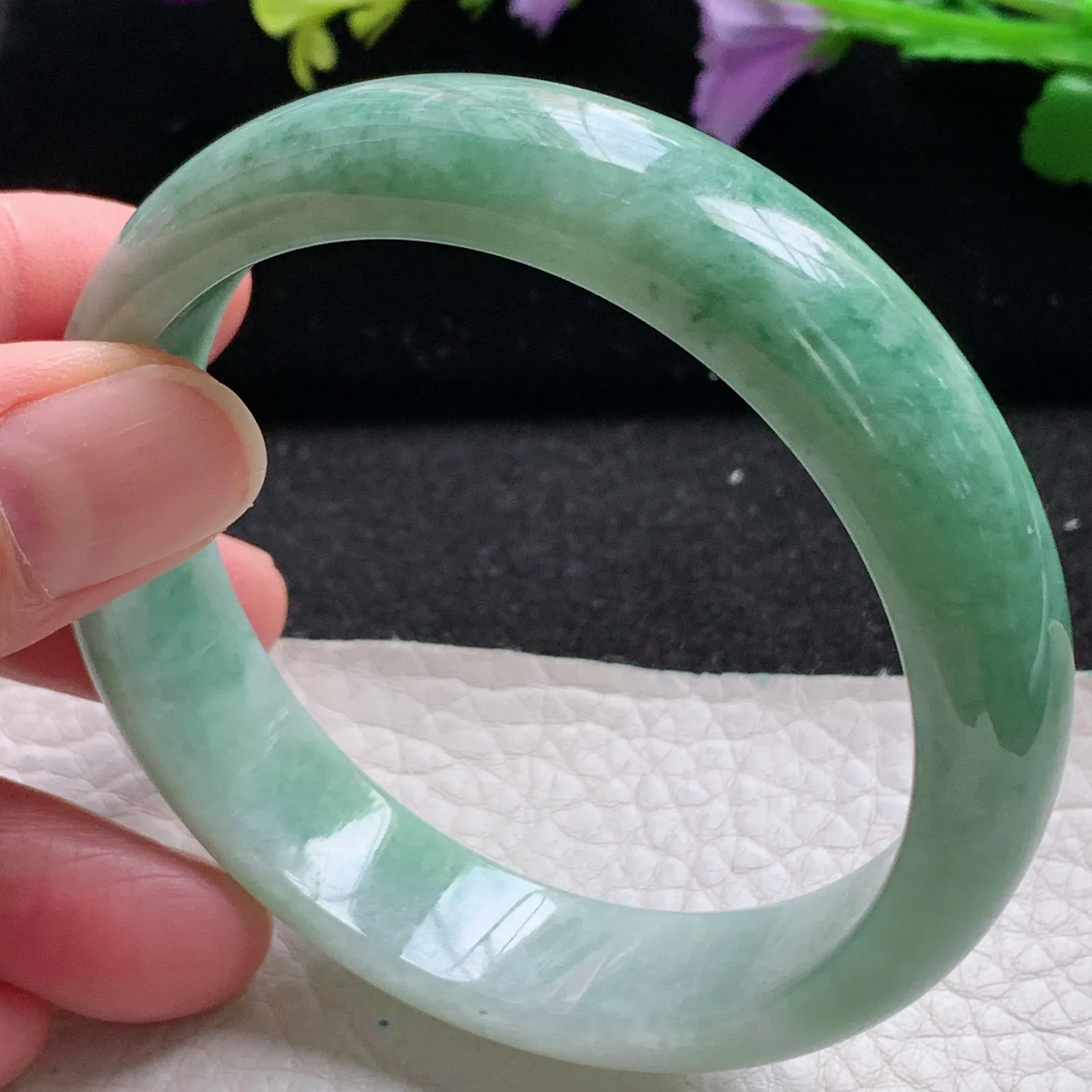 xx自然光57.5*14*7.2平安镯 缅甸翡翠a货玉手镯飘绿宽边玉手环