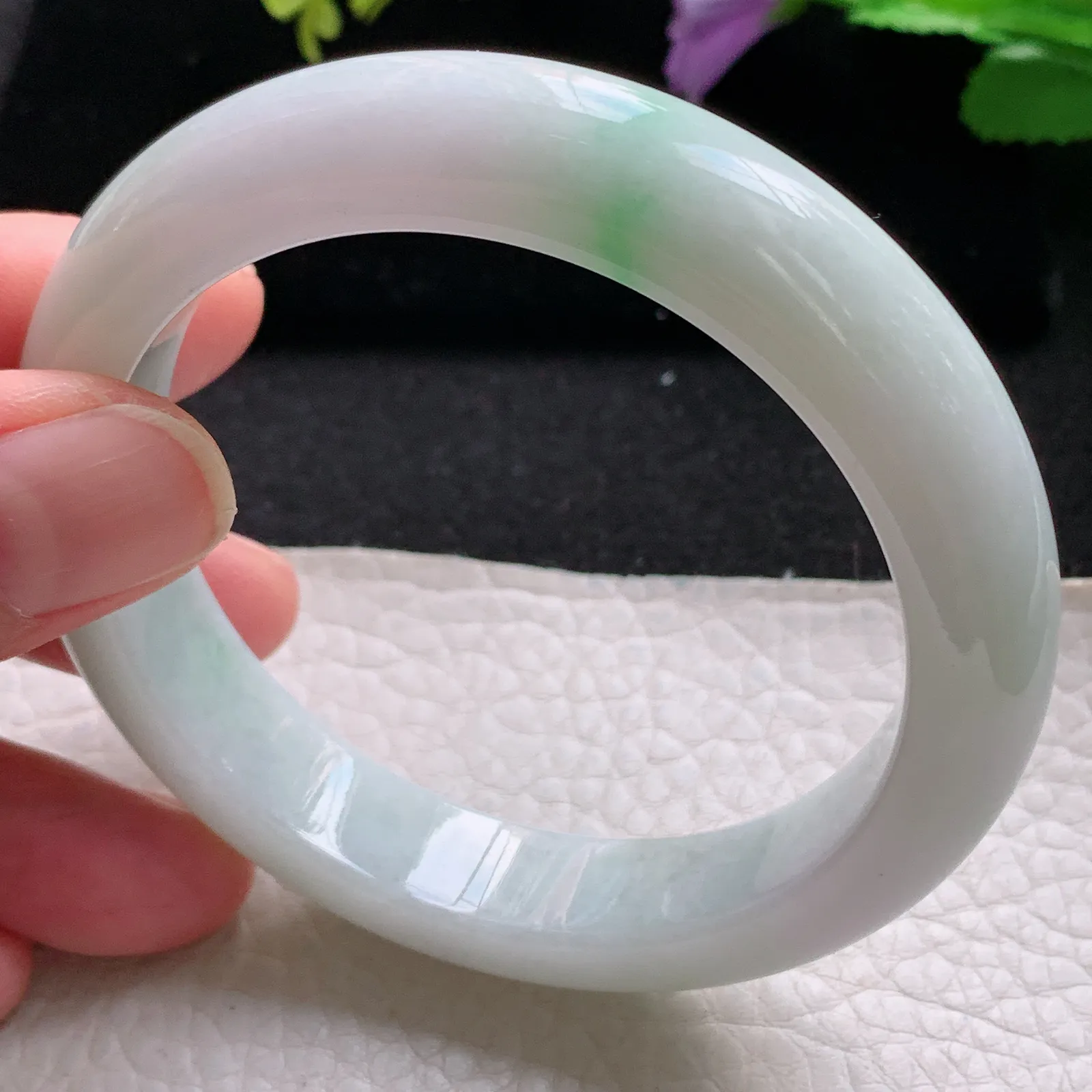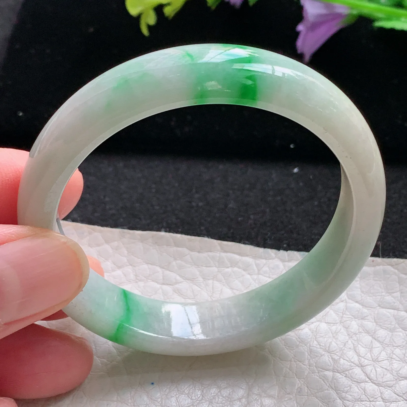 xx自然光57.5*12.8*9平安镯 缅甸翡翠a货玉手镯飘绿厚装宽边玉手环