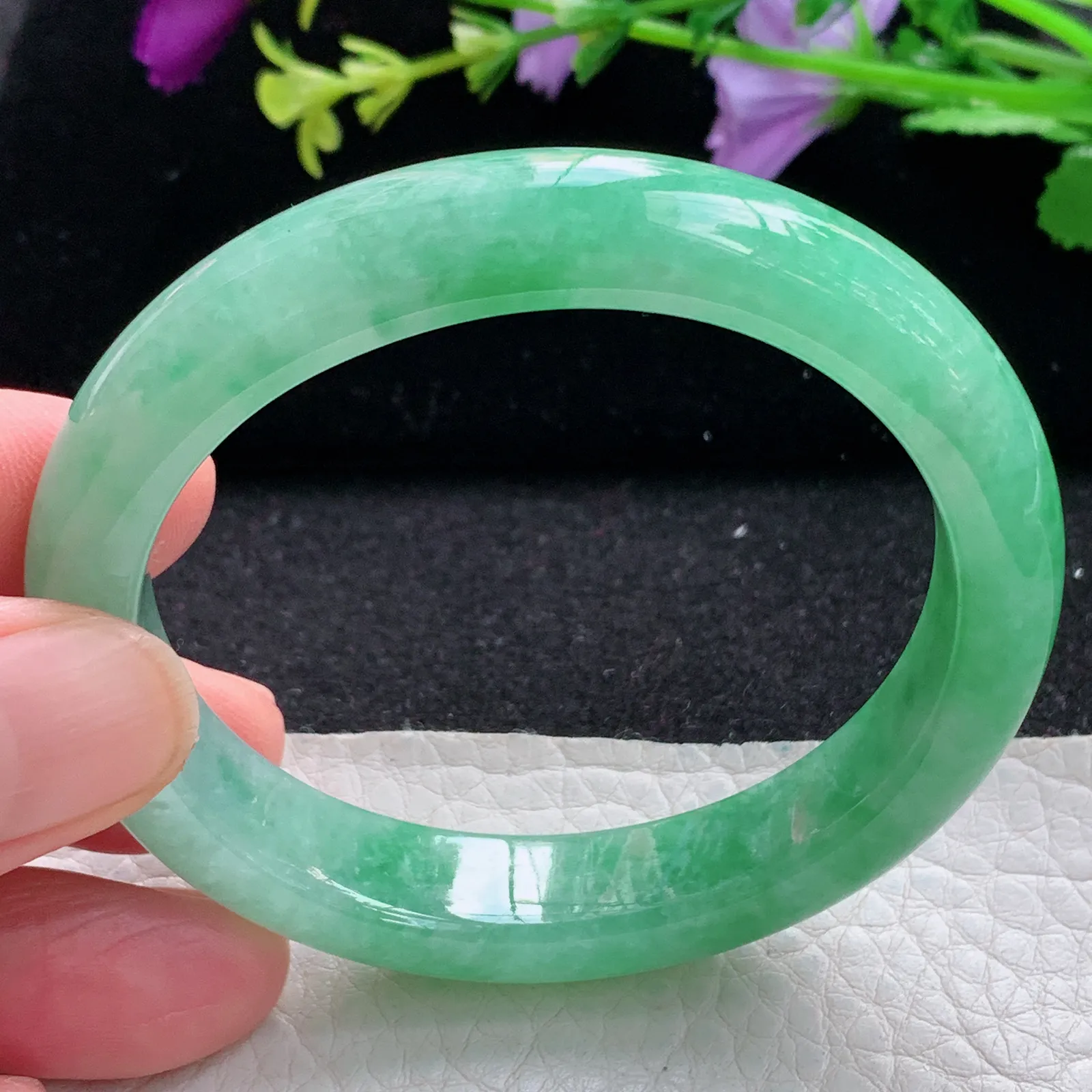 xx小圈口51*12.3*6.6平安镯 缅甸翡翠a货玉手镯飘绿秀气宽边玉手环