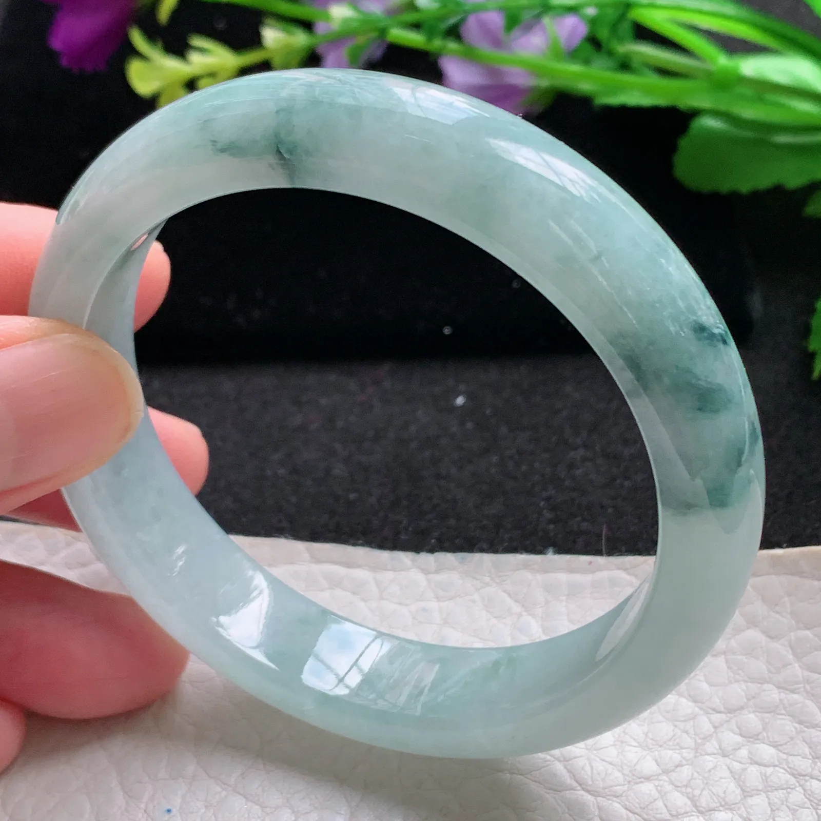 xx自然光56*13*7.7平安镯 缅甸翡翠a货玉手镯冰飘花厚装宽边玉手环