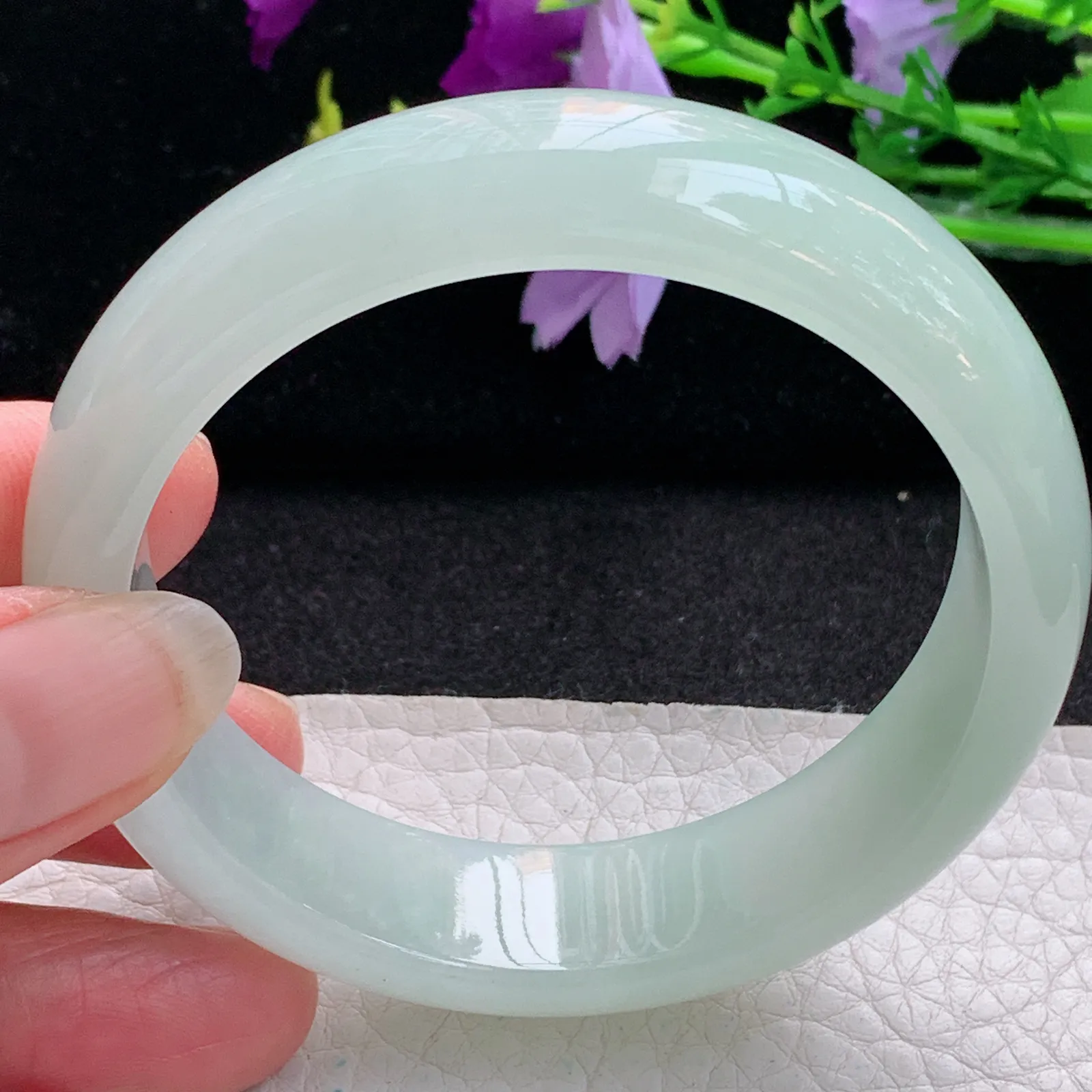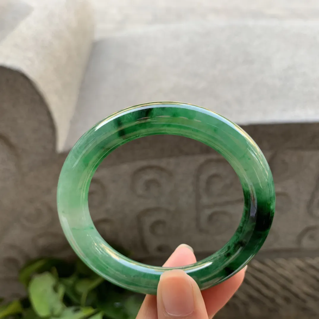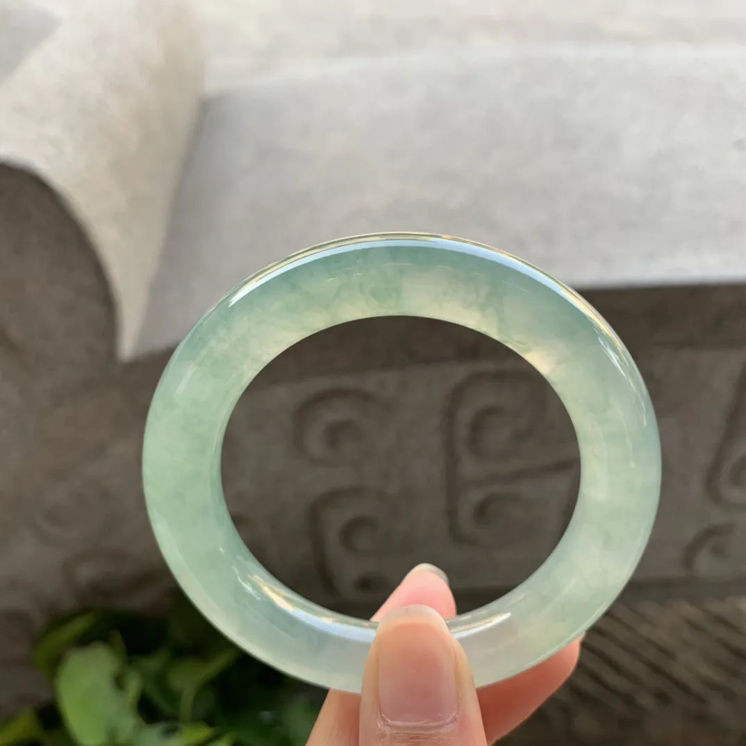 yq实拍56*15.3*7.8轮胎镯 天然缅甸翡翠浅绿冰晴玉手镯宽边玉手环
