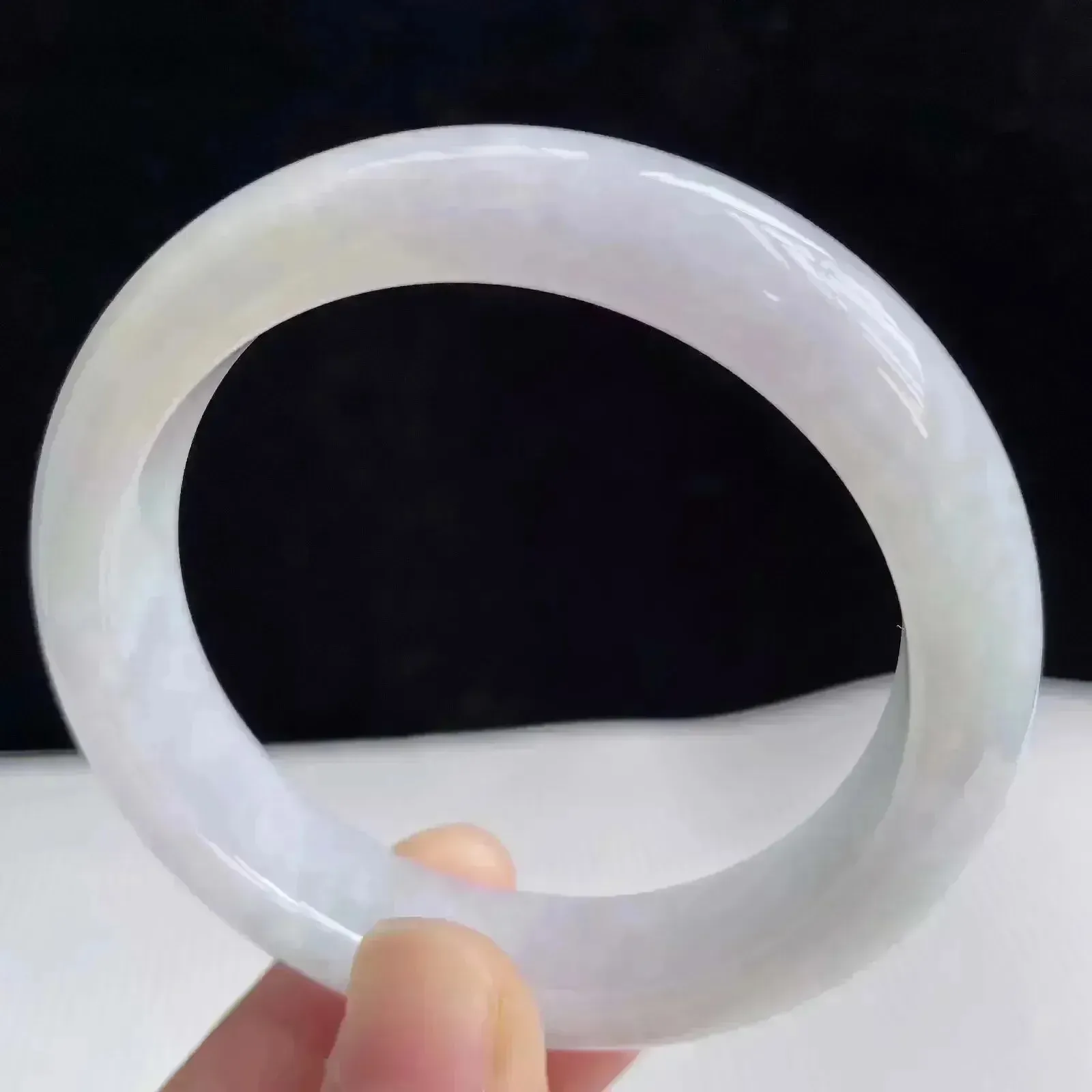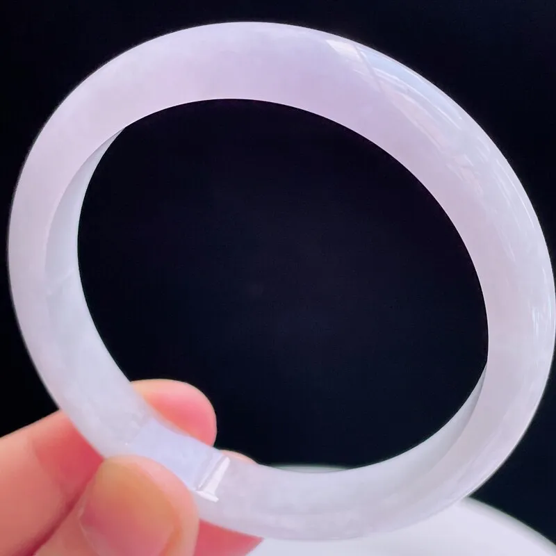 53.7mm自然光拍摄天然翡翠淡紫罗兰好种水正圈手镯 51.09克
