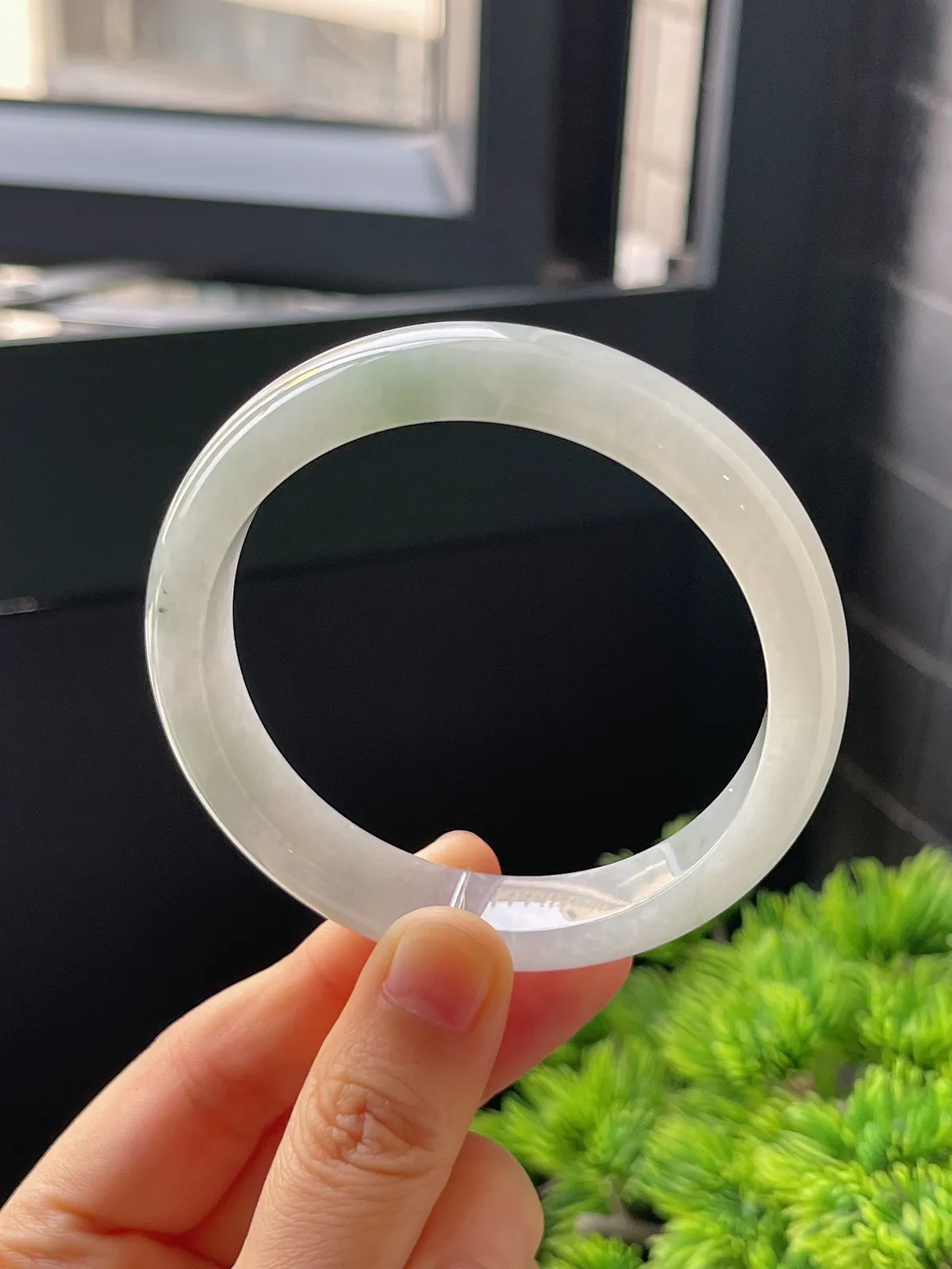 翡翠A货水润好种水52mm正圈手镯 48.48克