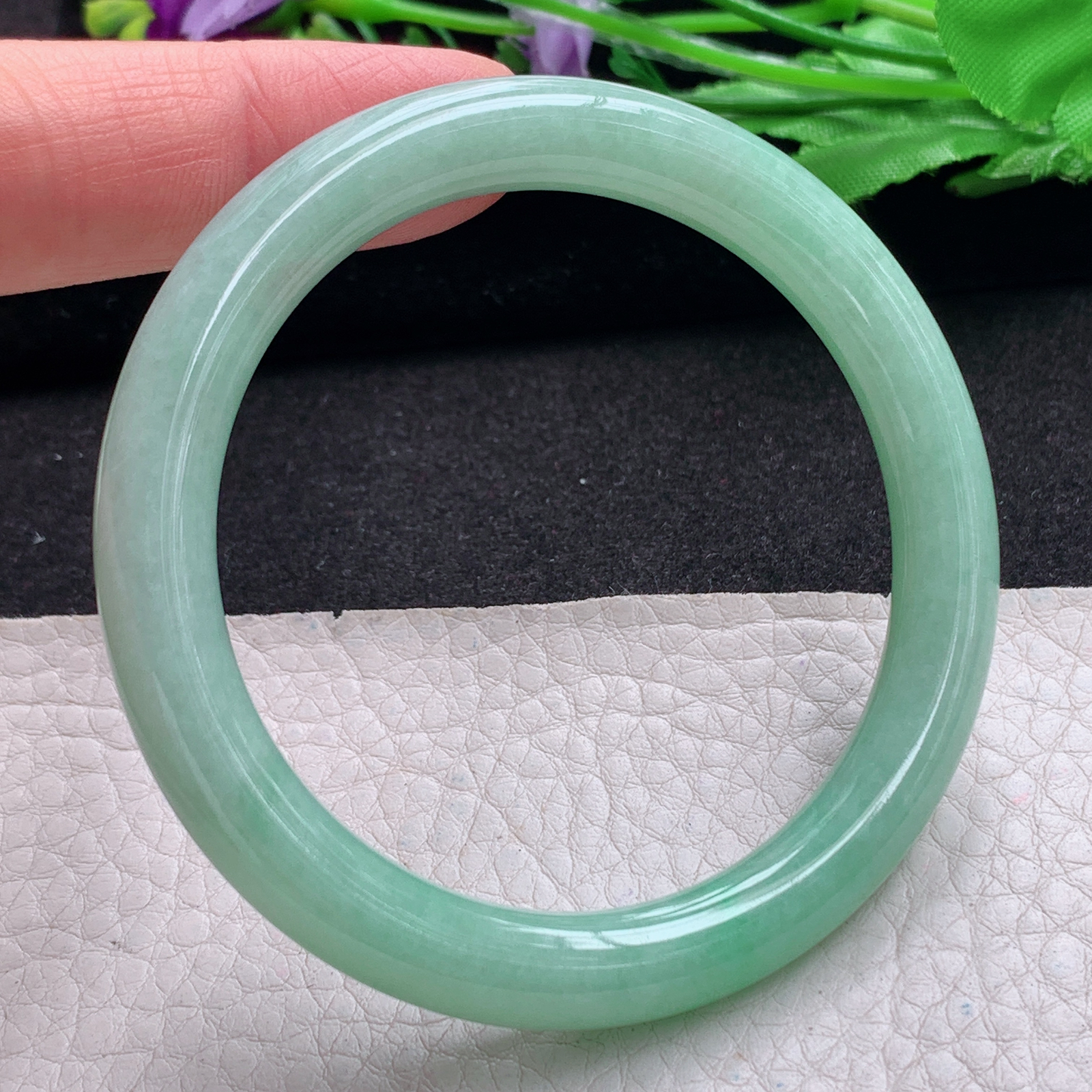 n实拍54*8.4美人镯 天然缅甸翡翠A货手镯细润满绿正圈圆条玉手环