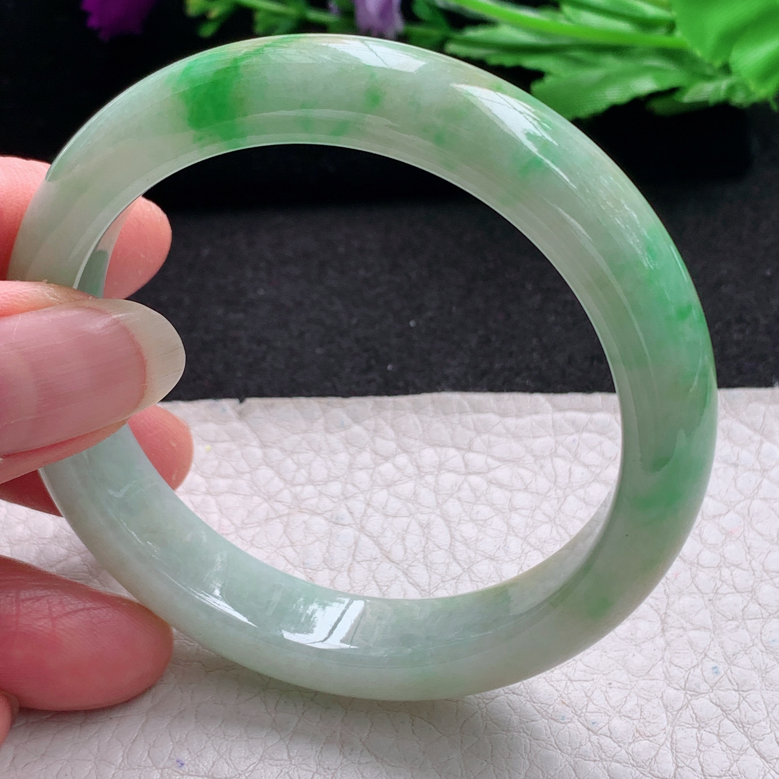 xx实拍58*12.8*8.5平安镯 天然缅甸翡翠A货手镯冰飘花正圈玉手环