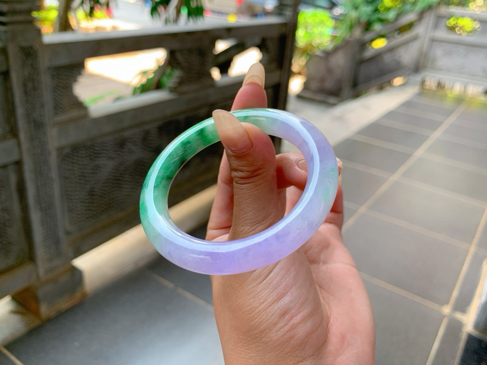 底妆细腻有水头,春彩底清新甜美,色泽淡雅古朴,时而幻紫时而幻绿,仙气满满56-12.5-8mm