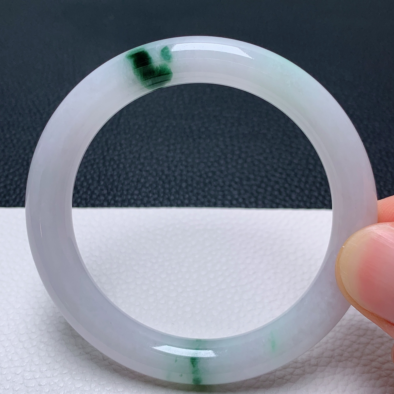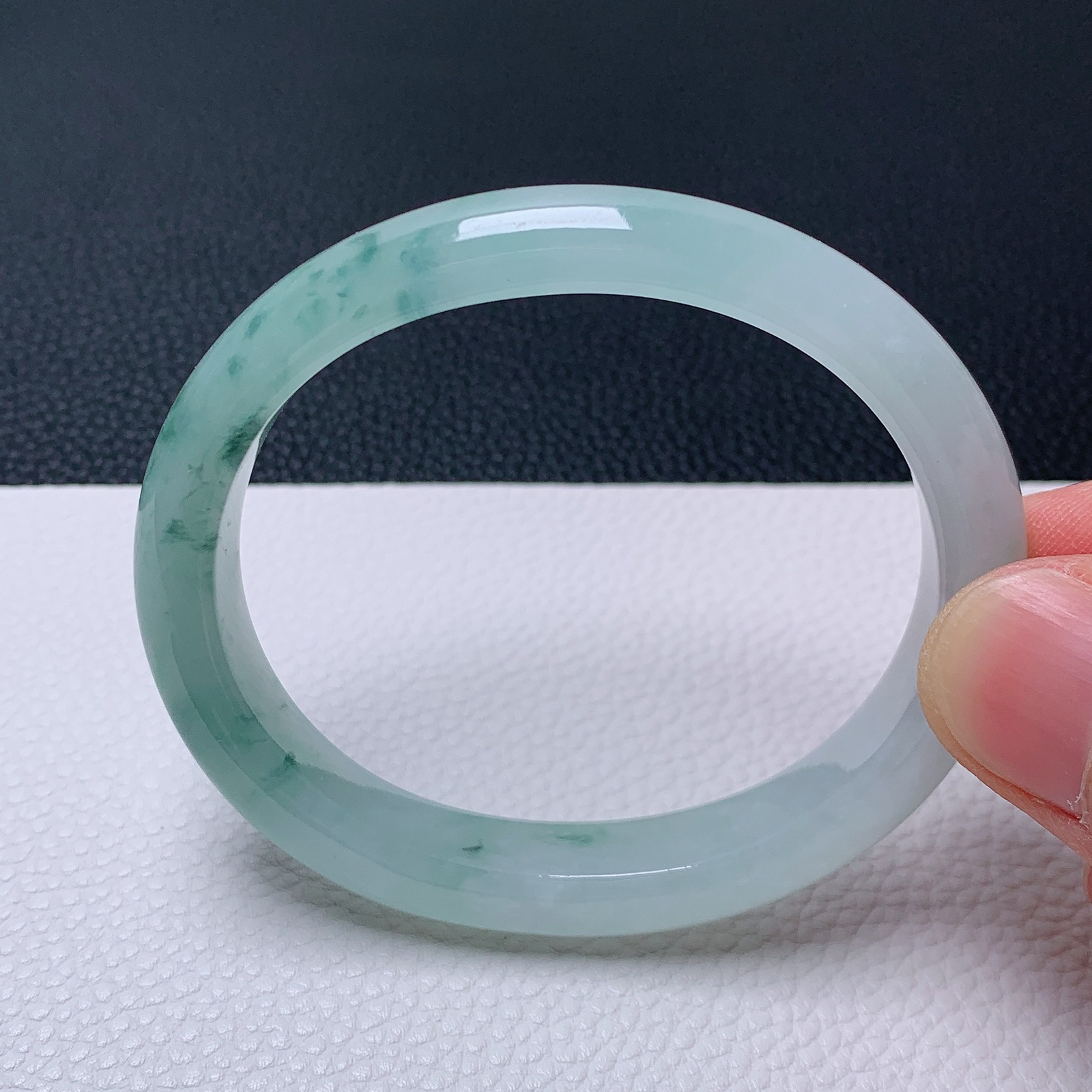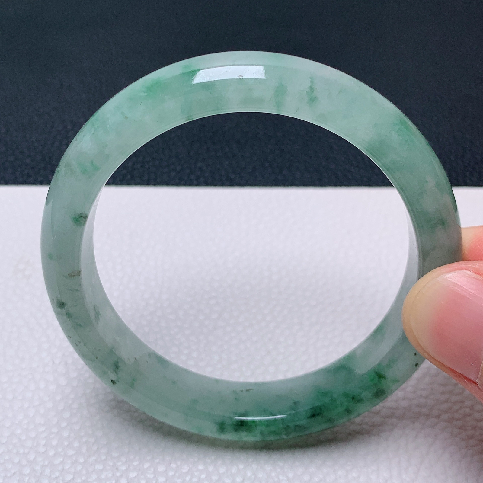 天然翡翠圈口52-53老坑飘花圆条手镯 玉质细腻 种水好 尺寸:52.5-8.8-8.5mm M2