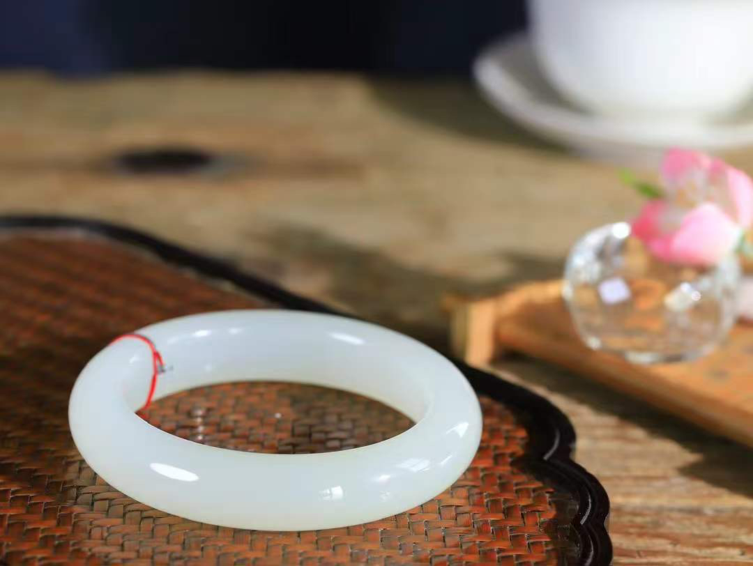 (一见倾心.手镯) 精品和田玉糖白玉手镯,玉质温润细腻 油性十足 手感舒适,高华雅逸,线条流畅,简