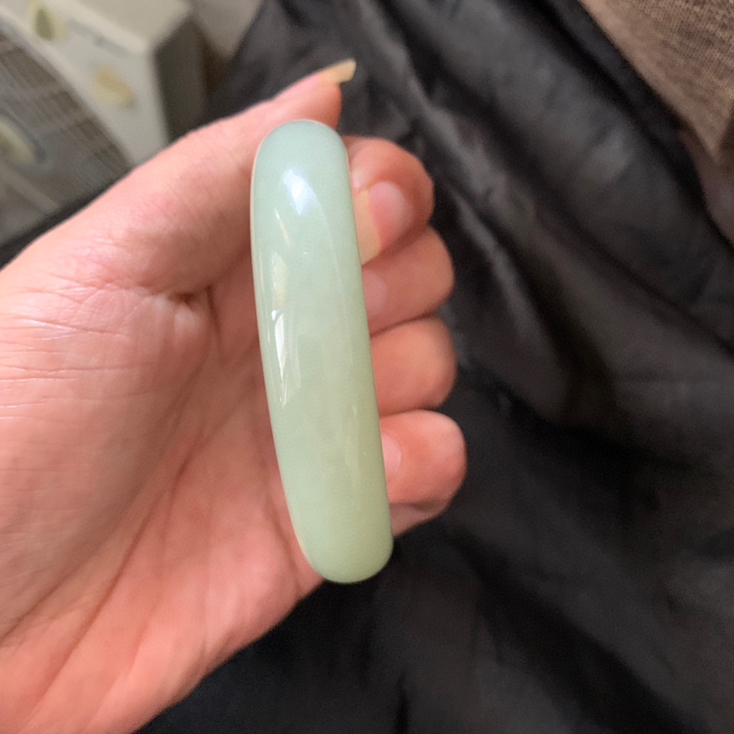 【翡翠名称】老坑种飘阳绿55圈口圆条手镯 【翡翠尺寸】55/11.3/11.3mm适合55-57正圈
