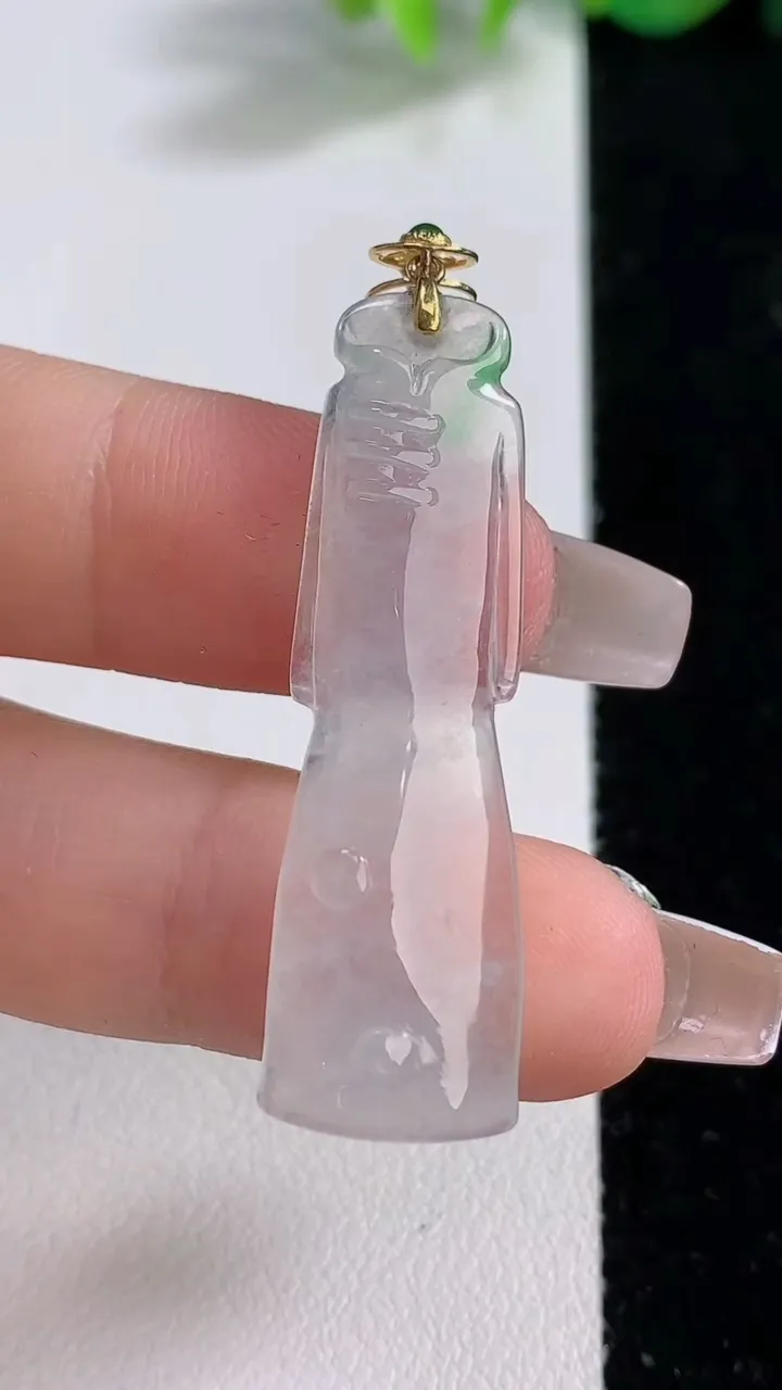 18k金镶嵌飘绿无事牌吊坠 玉质细腻 水润亮眼 色泽艳丽 整体尺寸33.7*18*3