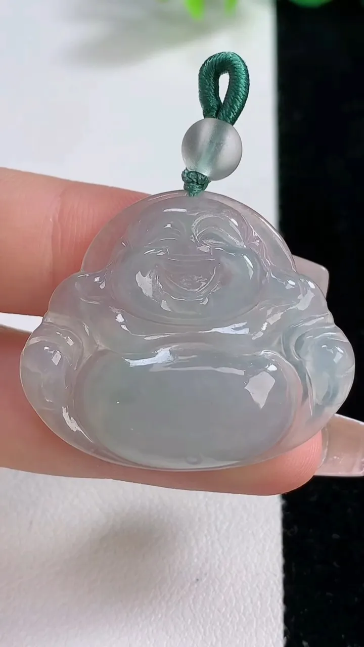 【冰种黄翡佛公】质地细腻,工艺很好,饱满圆润,笑口常开,18k金钻镶嵌,裸石尺寸8.9*11.6*3