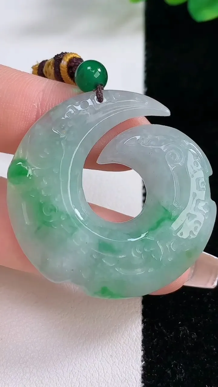 【冰种飘花福豆吊坠】种地上乘,冰感十足,通透起光,饱满圆润,收藏品质,18k金钻镶嵌,裸石尺寸28.
