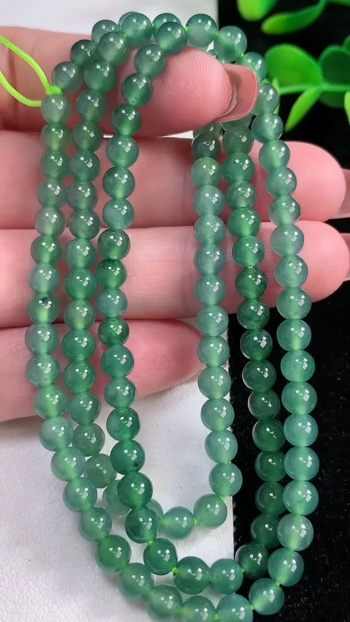 天然A货翡翠圆珠项链,尺寸5.4-4,重:31.63g 12月17日