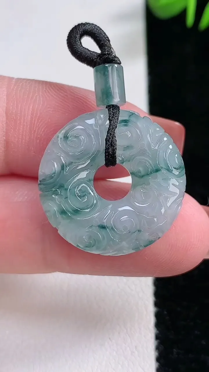 天然A货翡翠冰种飘花雕花平安扣吊坠,尺寸25.5-9,重:5.81g 12月17日